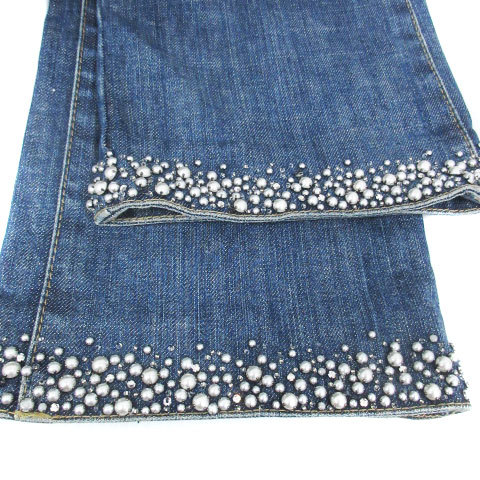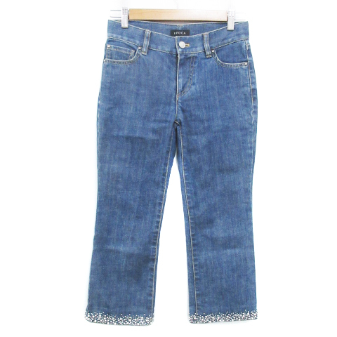 エポカ EPOCA デニムパンツ ジーンズ テーパードパンツ 七分丈 ビーズ 36 青 ブルー /FF28 レディース