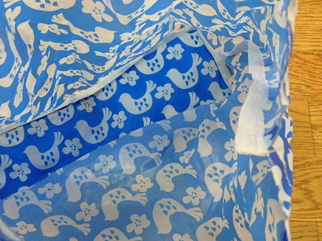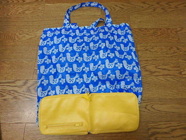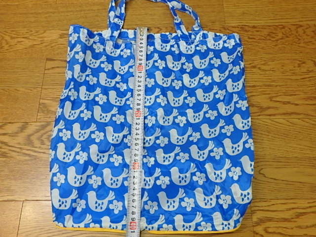 n311u 鳥柄 ブルー×黄色 エコバッグ とり 中古