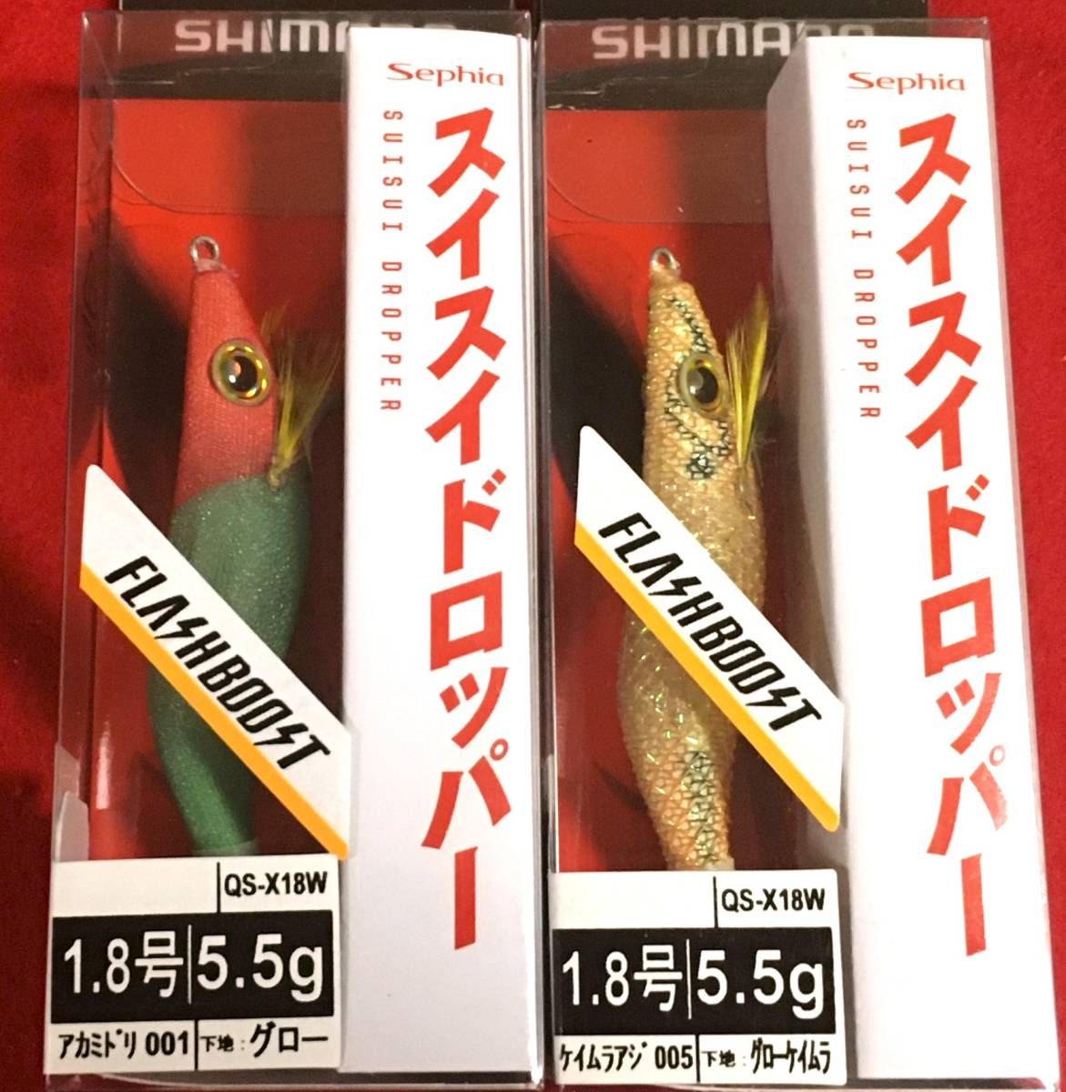 スイスイドロッパーフラッシュブースト 1.8号 アカミドリ&ケイムラアジ  2本セット  #イカメタル#オモリグ#マイカ