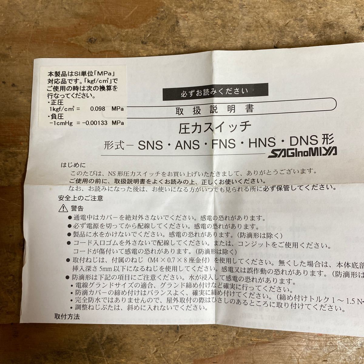 未使用品☆鷺宮製作所 SAGInoMIYA 圧力スイッチ PRESSURE CONTROLS SNS-C106 -0.06~0.6MPa☆送料520☆レ+