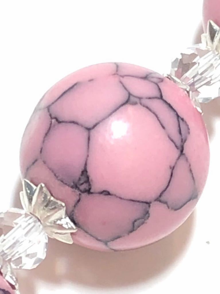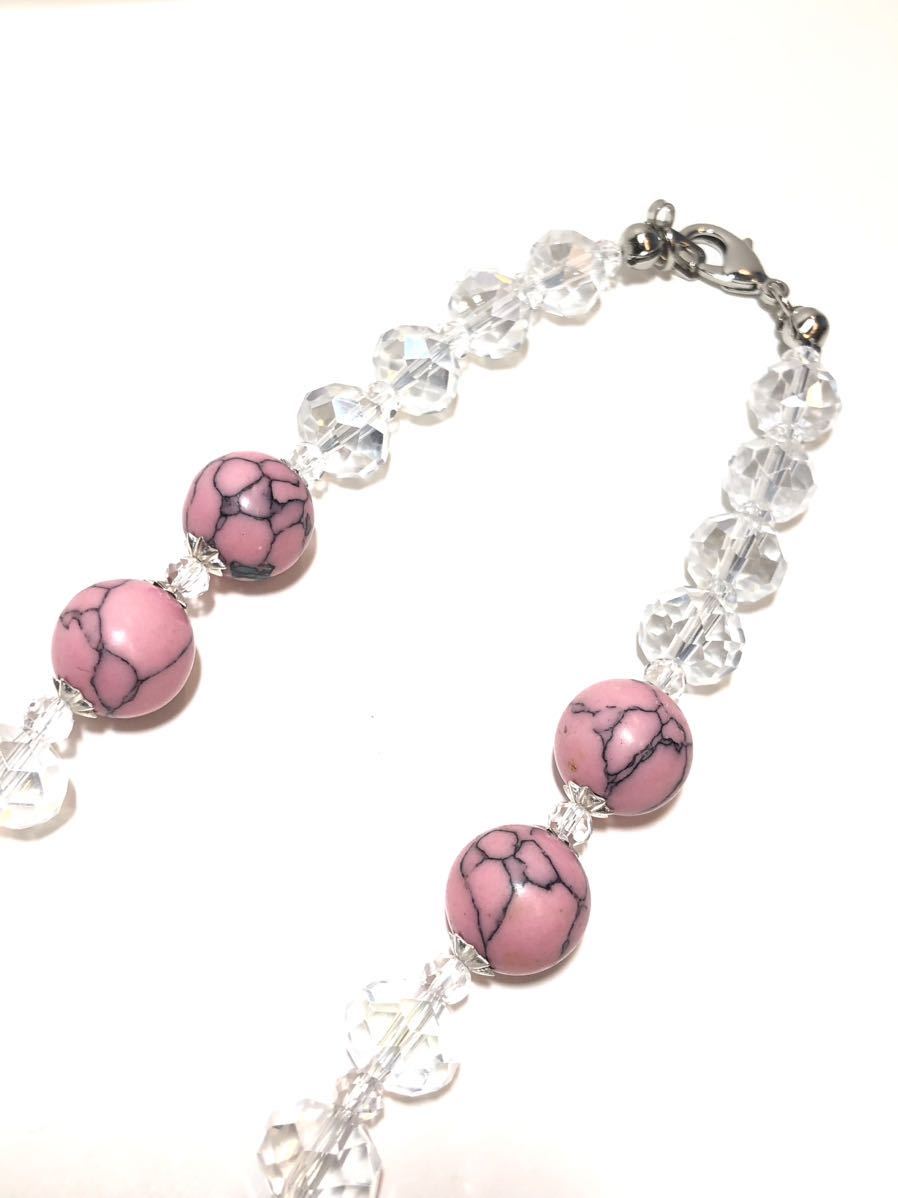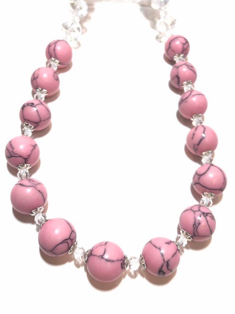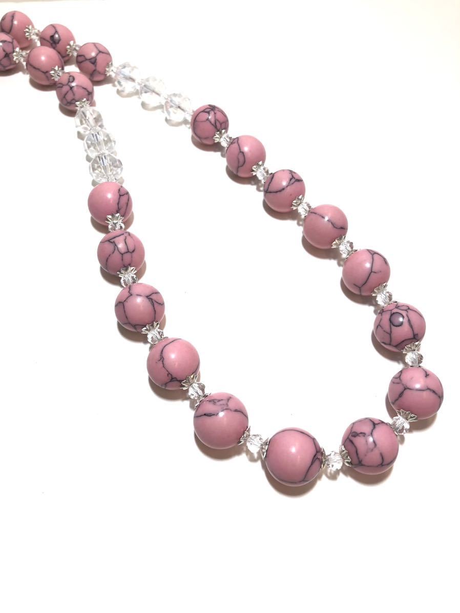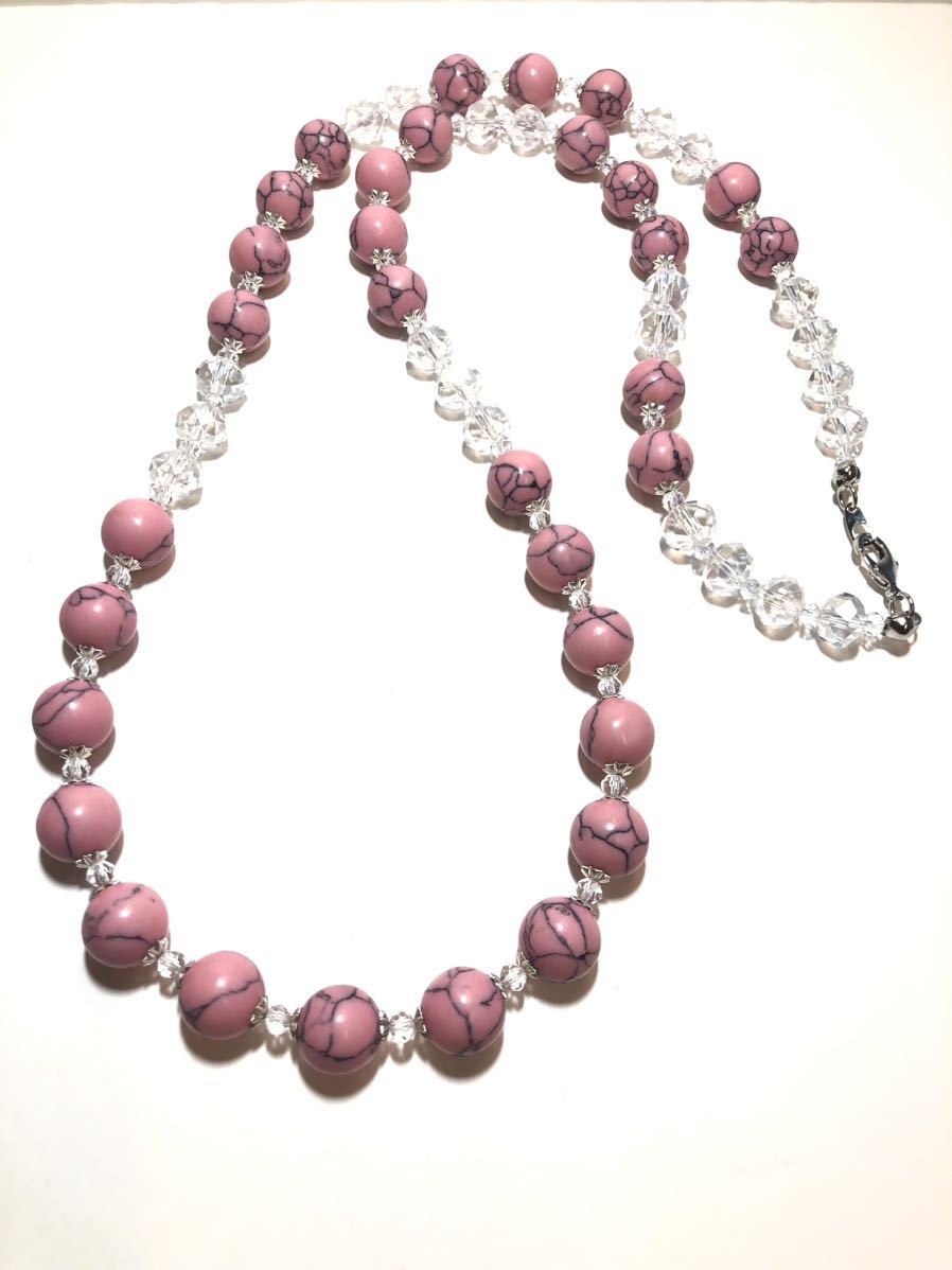 ビーズの大きさ トルコ石ビーズ約1.2cm クリアクリスタルガラスビーズ約1cm ネックレスの長さ 金具から金具まで約83cm。