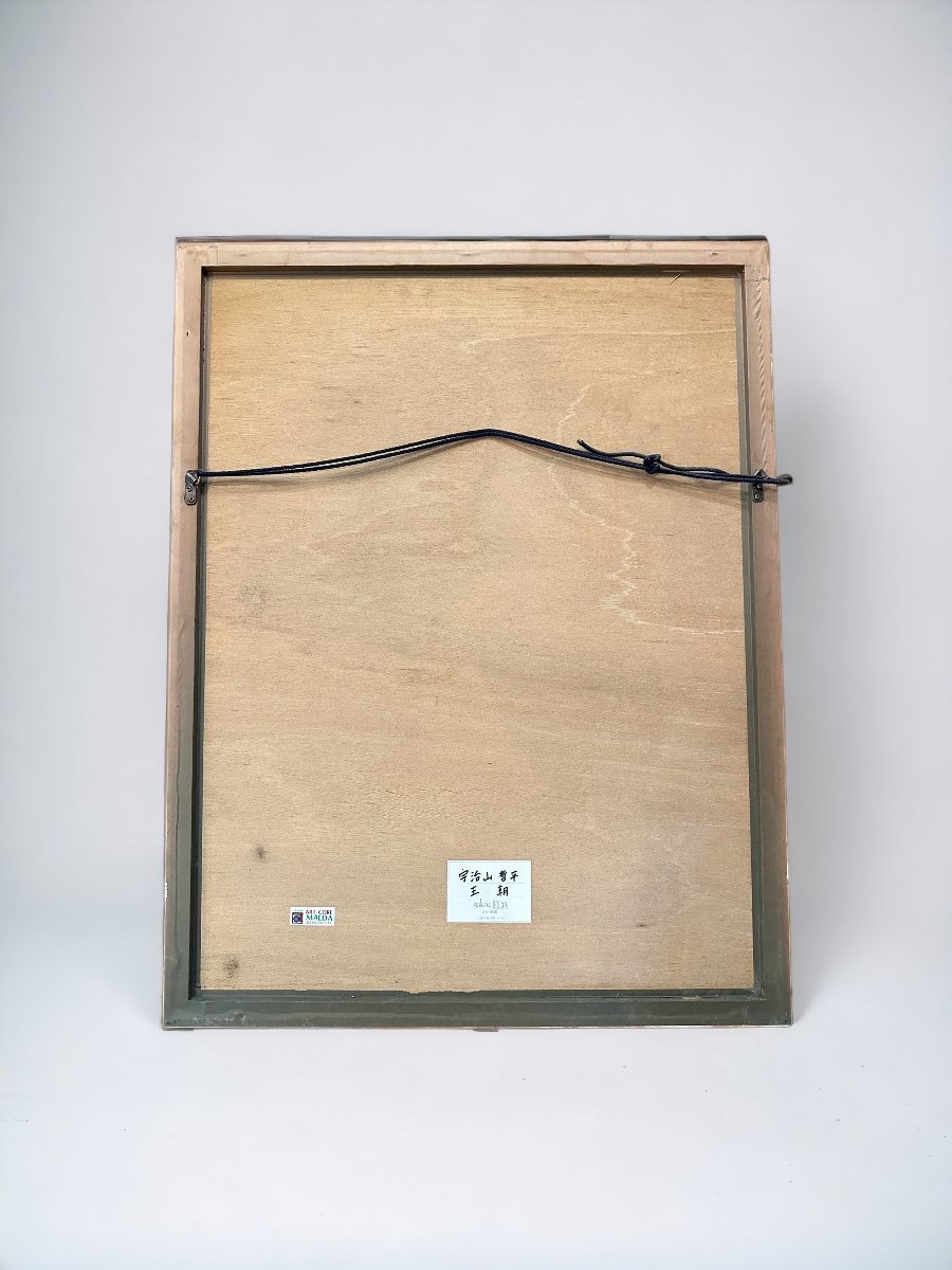 | 品名:王朝 作家:宇治山哲平 技法:シルクスクリーン 付属品:黄袋・段ボールタトウ箱 作品寸:H53×W36.5cm 作品状態:ヤケがございます。シートがズレて下にさがっております。 裏はしっかり額装されている為、そのままの状態でのお譲りとなります。 額縁寸:H73×W56.5cm 額縁状態:所々にスレや汚れなどございます。 | |||