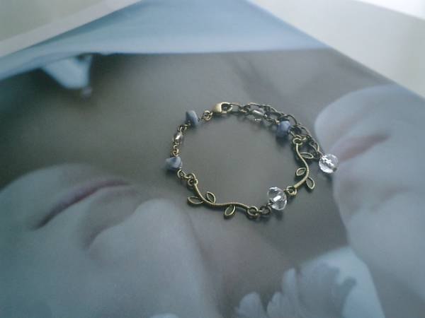 ガラスの靴の女の子・・シリーズです♪妖精のため息・・繊細なデニムラピスと水晶のブレスレットです♪グレーやブルーグレーや藍色がキュートなデニムラピスのさざれに8ミリのボタンカットの水晶やデザインチャームやスモーキークォーツの丸玉を合わせて可憐な表情です♪長さは全長23センチ位で調節自由です♪♪お揃いのネックレスも出品しています♪シンプルで飽きのこないいつまでも着けられるデザインを考えて作りました!ハンドメイドをご理解頂いてノークレーム、ノーリターンでお願いします