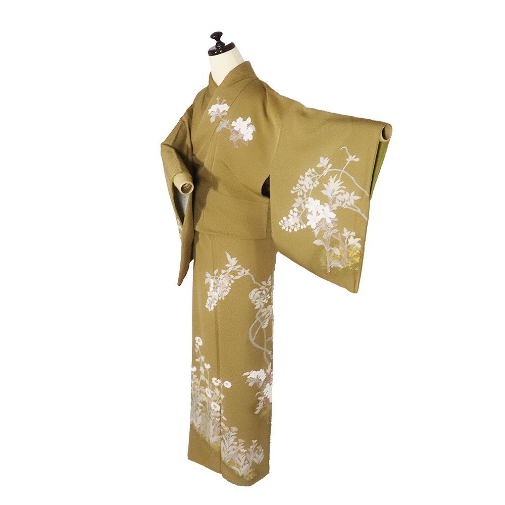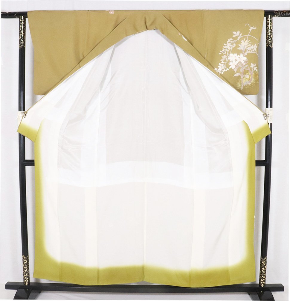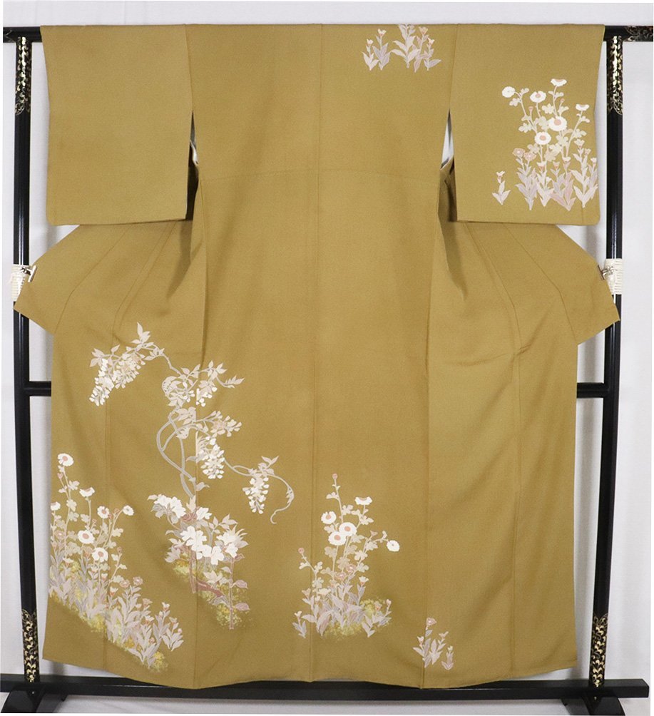 | 訪問着 袷 丹後縮緬地 薄緑地 草花 162 広襟 5号 |