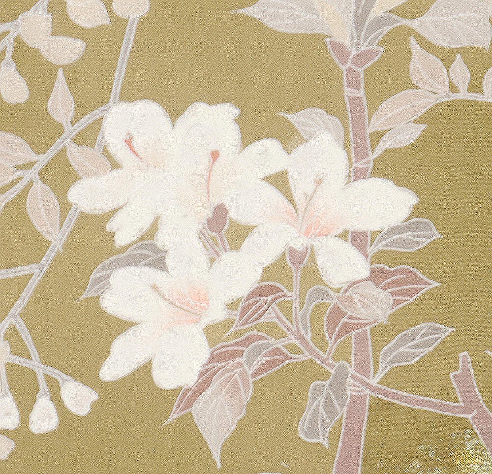 訪問着 袷 丹後縮緬地 薄緑地 草花 (写真では上手く色が出ない場合があります。ご了承下さい) |