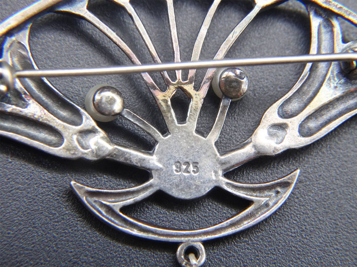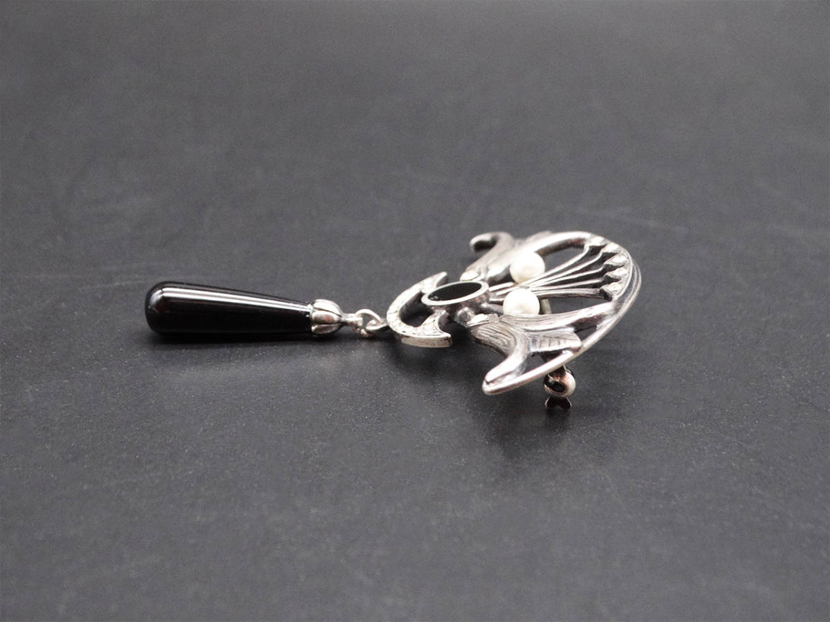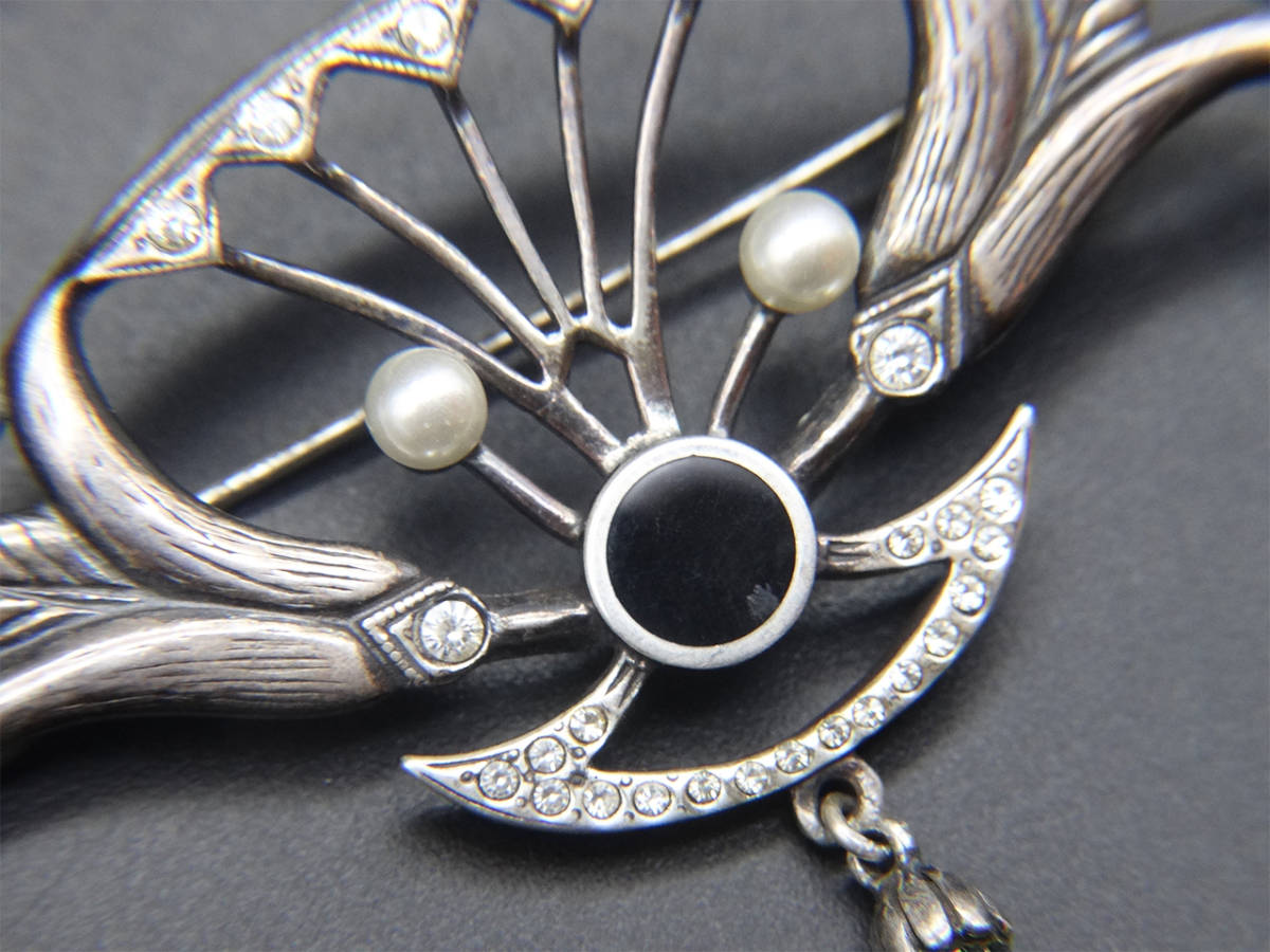 ★ラインストーン / silver / シルバー / ブローチ / 925 / vintage / brooch / ヴィンテージ / デザインブローチ / パール / 天然石