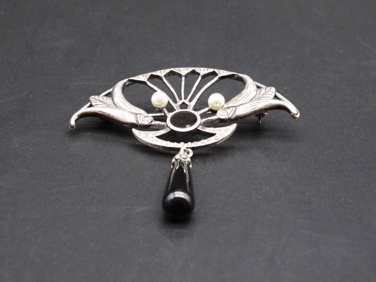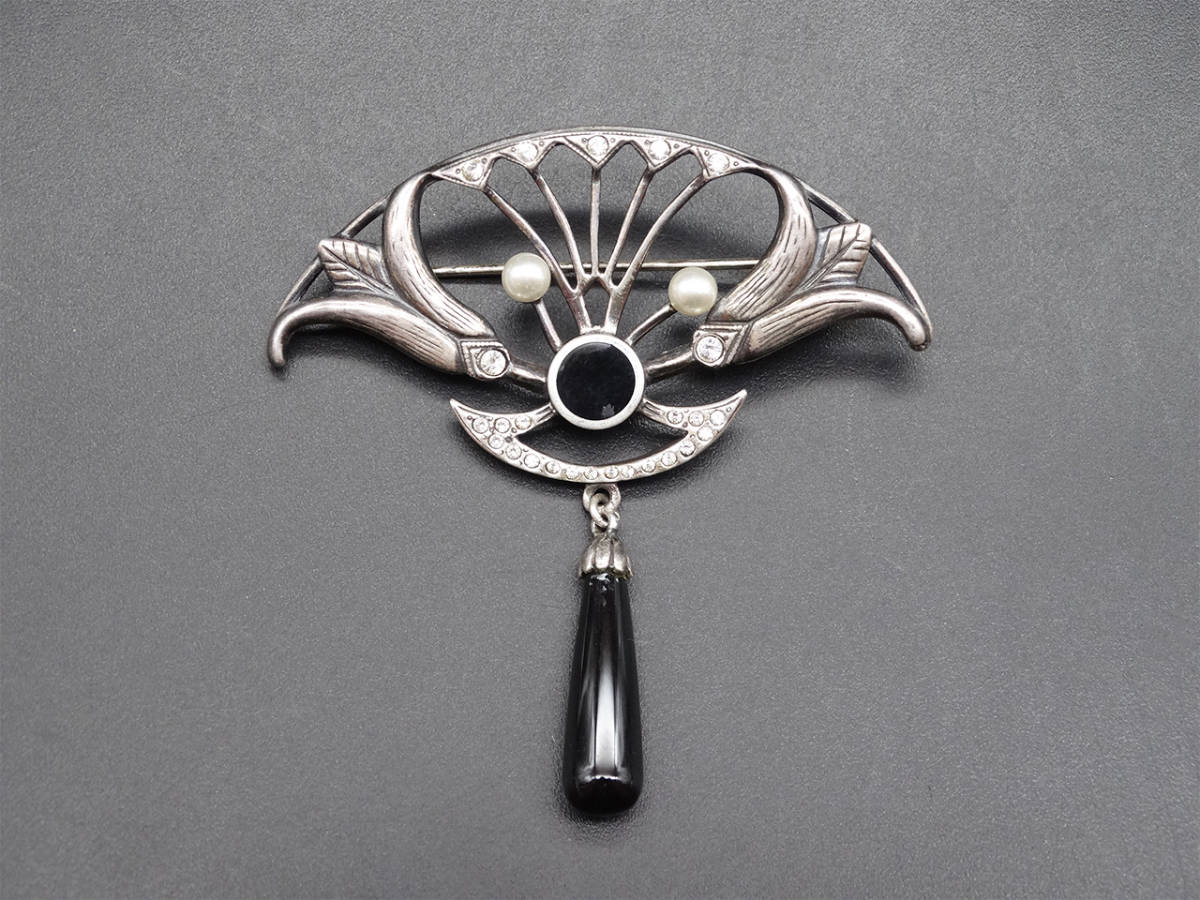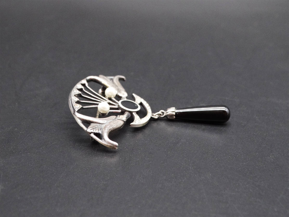 ★ラインストーン / silver / シルバー / ブローチ / 925 / vintage / brooch / ヴィンテージ / デザインブローチ / パール / 天然石