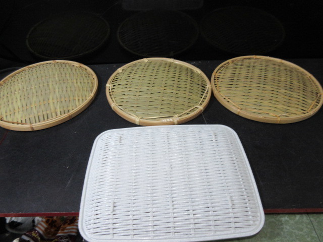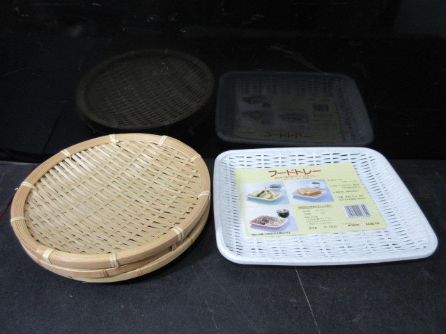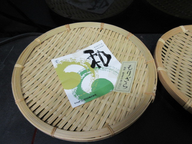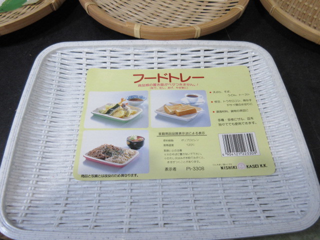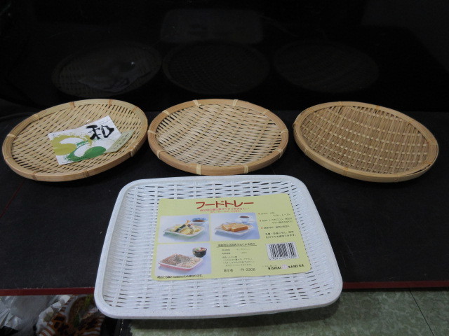 未使用フードトレー1個 サイズ横幅 約24cm 奥行約19cm NISHIKIKASEI 食品類の置き面がベタつきません (ゆで蒸しあげやきもの) 竹製 もりざら 3個 外径 約21cm 麺類 野菜等の盛り付け作りのしっかりした日本製です 4個とも未使用に付き傷汚れ 破損などはありません 写真が全てになります 引き取り出来ます 宜しくお願いします