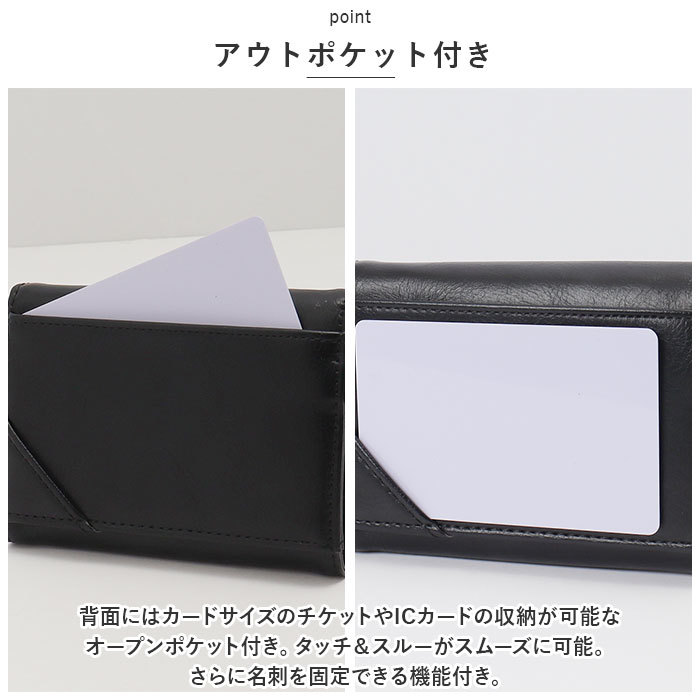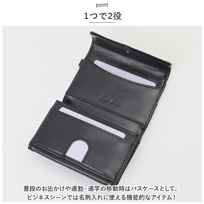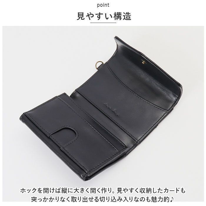 | 商品説明 | ・・お会計がスムーズにパッと見渡せるお財布「楽見え楽出し秒財布」シリーズからリールマルチケースが新発売! ・【見やすい構造】 ・ホックを開けば縦に大きく開く作り。見やすく収納したカードも突っかかりなく取り出せる切り込み入りなのも魅力的♪ ・【1つで2役】 ・普段のお出かけや通勤・通学の移動時はパスケースとして、ビジネスシーンでは名刺入れに使える機能的なアイテム! ・【アウトポケット付き】 ・背面にはカードサイズのチケットやICカードの収納が可能なオープンポケット付き。タッチ&スルーがスムーズに可能。 ・さらに名刺を固定できる機能付き。 ・【コインケースにも】 ・名刺入れの部分はマチ幅があり、ちょっとしたコインケースにも◎ ・【シンプルデザイン】 ・ベーシックなカラーにホックのアンティークゴールドがシンプルかつ上品なデザイン。エイジレス、シーン問わず使えるのもGOOD。 ・【コンパクト設計】 ・コンパクトな3つ折り設計で、ミニサイズのカバンやアウター、ジャケットのポケットにINできるのも嬉しいポイント。普段のお出かけの持ち運びに便利☆ ・【付け外しできるストラップ】 ・使用用途やシーンに合わせてストラップの付け外しが可能! ・【ポケット仕様】 ・カードポケット×3、名刺入れ×1 |