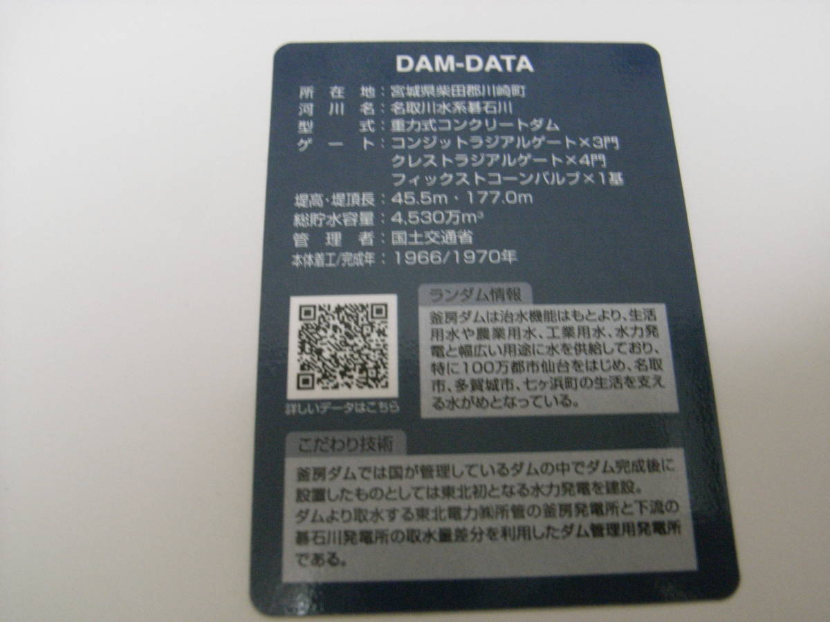 ダムカード 釡房ダム 宮城県柴田郡川崎町
