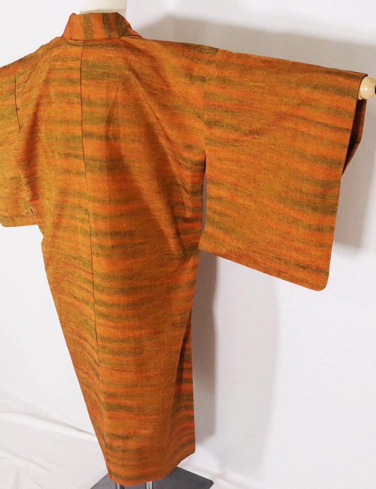 | 色・柄 | 和装コート 単衣 道中着 ロングコート 緑・橙色・赤・横縞暈し (写真では上手く色が出ない場合があります。ご了承下さい) |