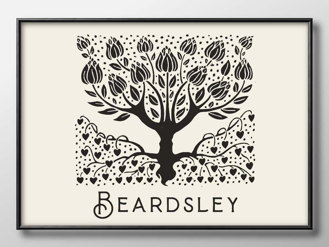 14417■送料無料!!アートポスター 絵画 A3サイズ『ビアズリー 黒 ブラック ボタニカル』イラスト 北欧 マット紙