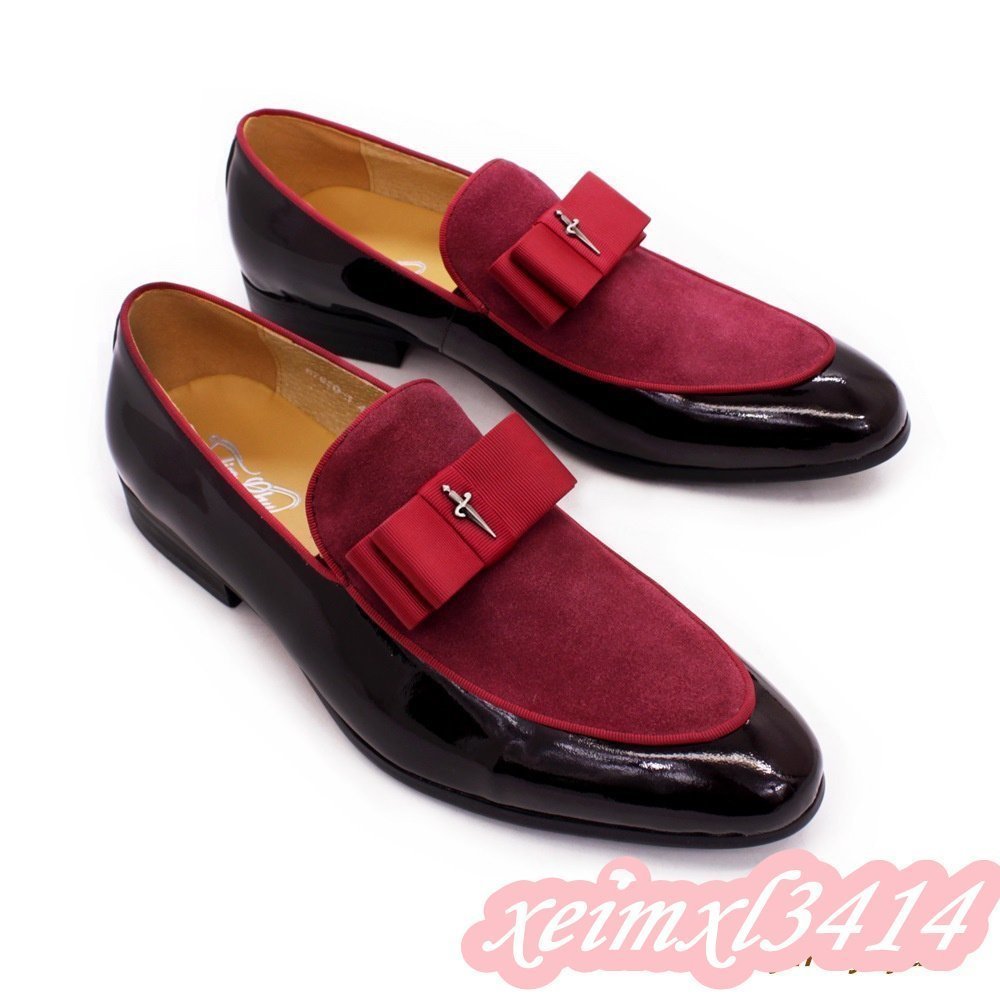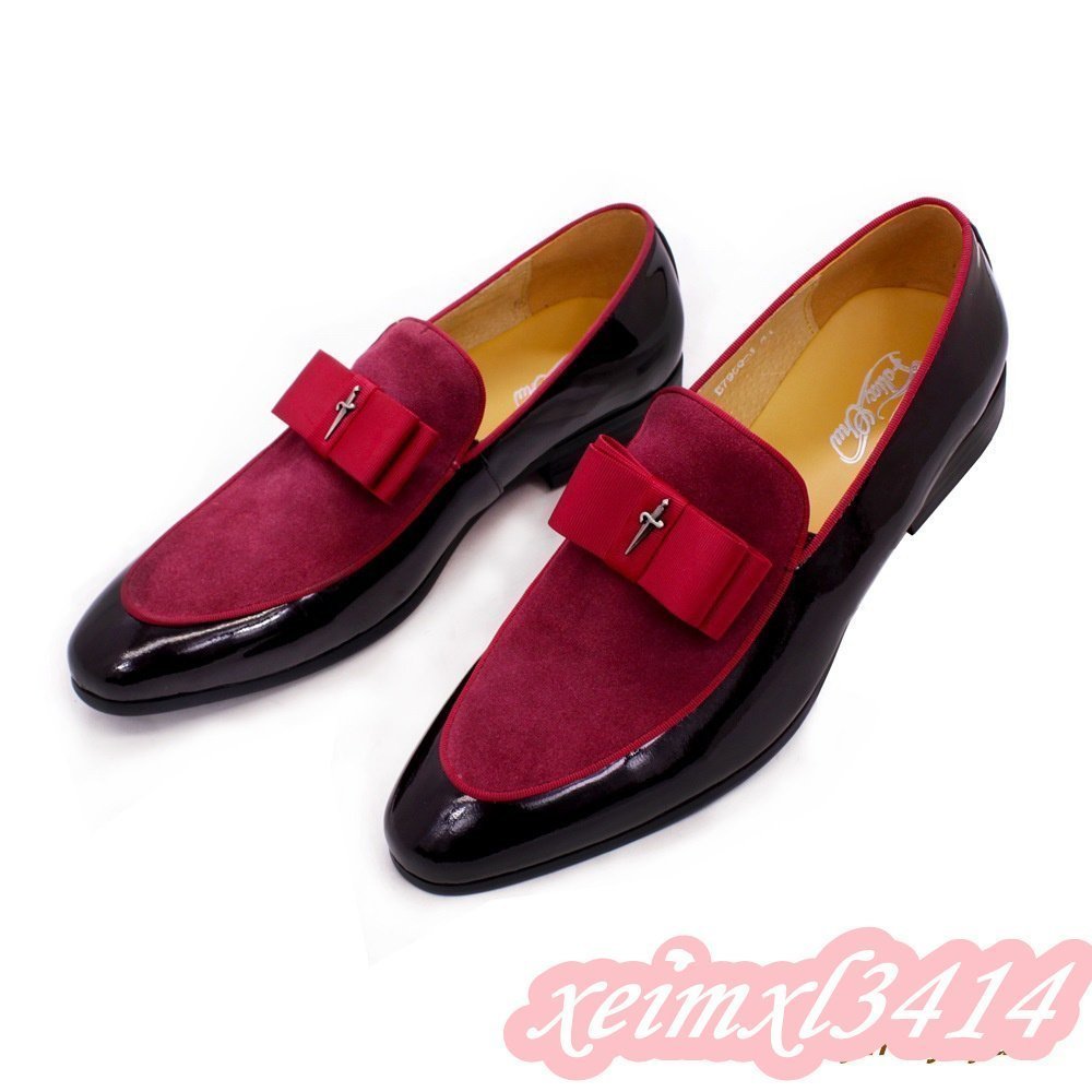 最高級★ビジネスシューズ メンズ ローファー スリッポン本革 レザーシューズ 職人手作り ドレスシューズ紳士靴 牛革 革靴 レッド 27.0cm