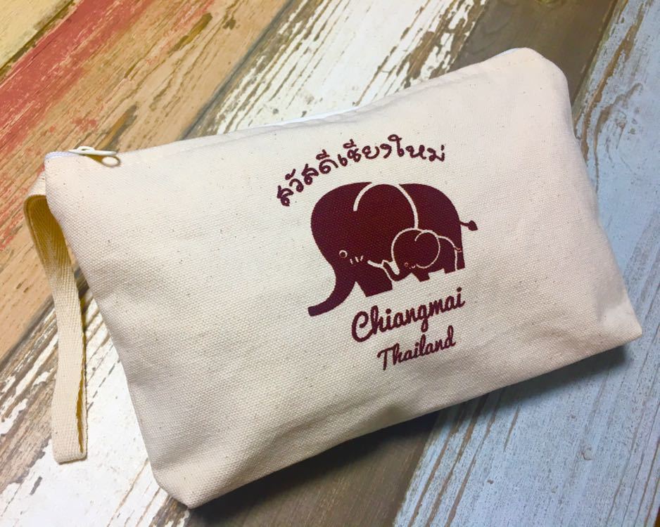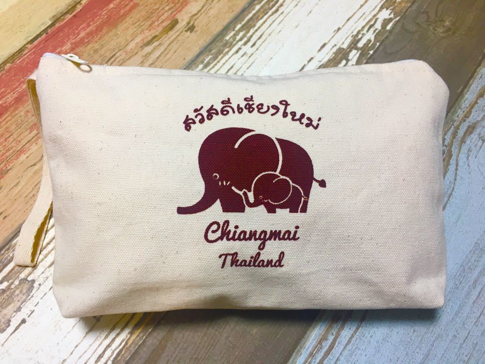 タイのマーケットで購入したゾウさんが描かれているポーチです。