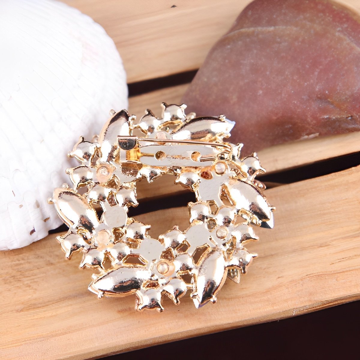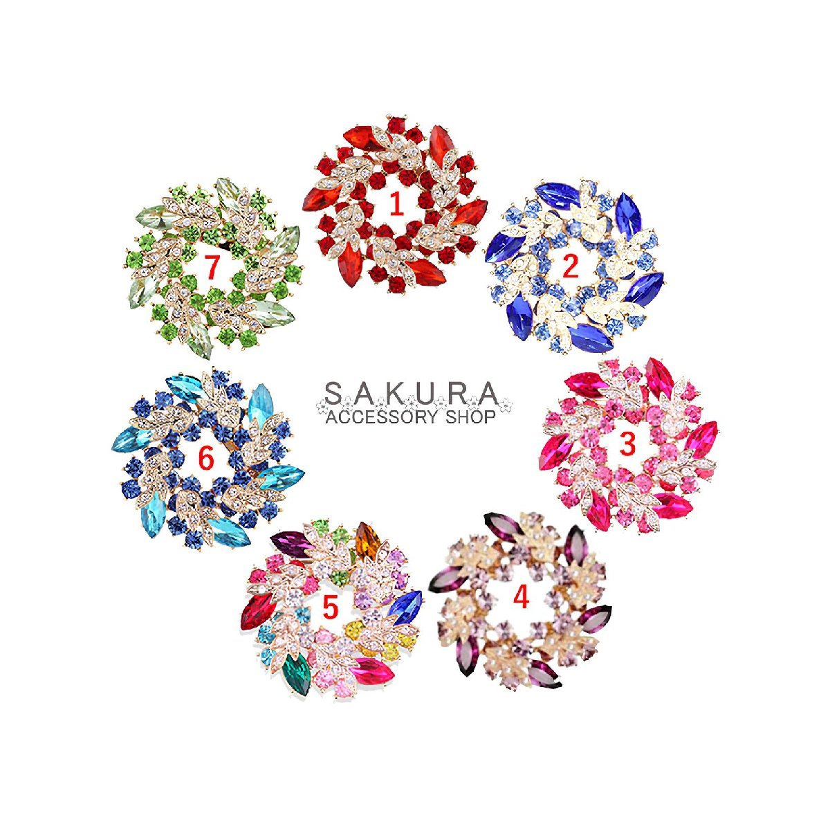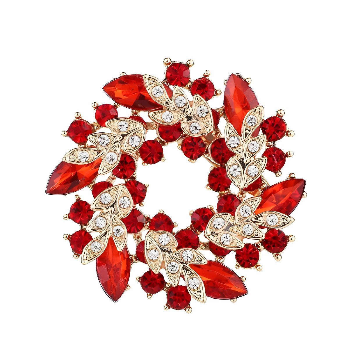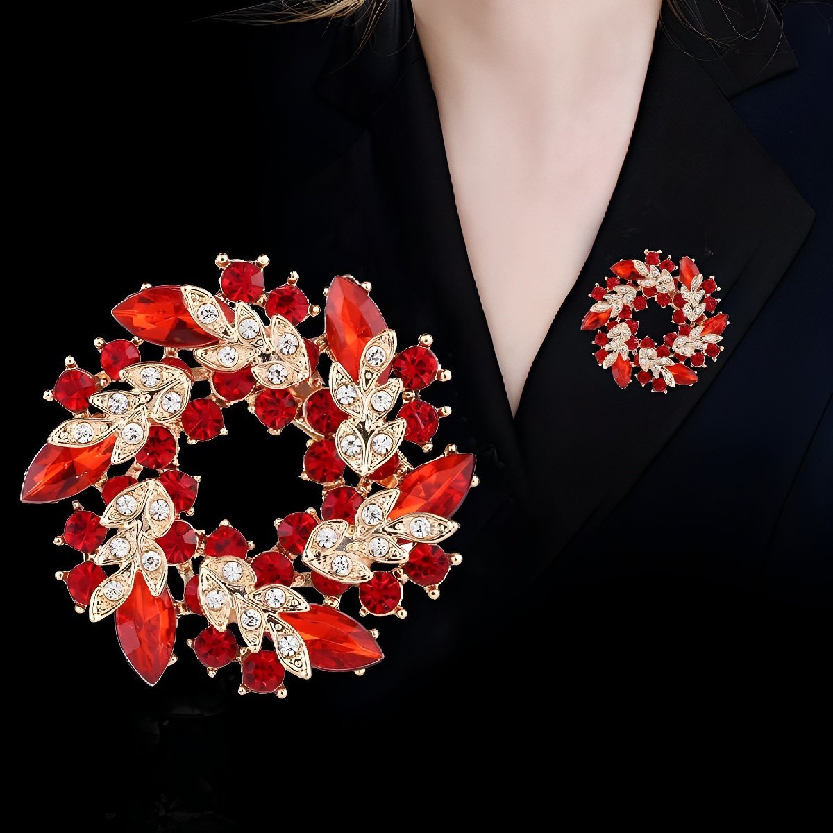 【花】 超綺麗 サークル フラワー リーフ ブローチ/レッド