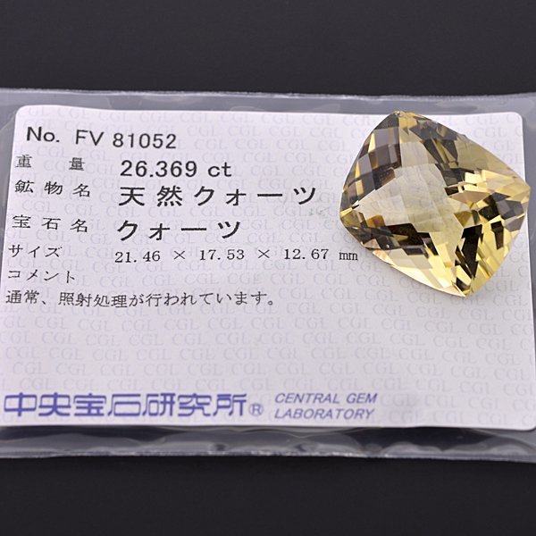 | E【BSJD】天然クォーツ 26.369ct ルース 21.46×17.53×12.67mm 裸石 中央宝石研究所 ソーティング付き 本物 | ||||