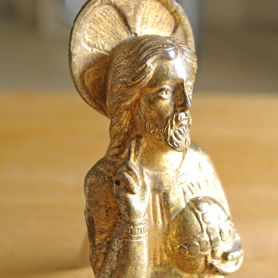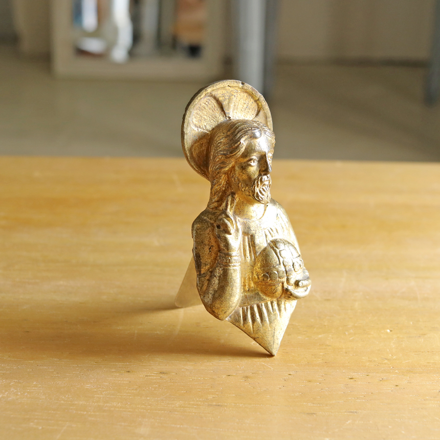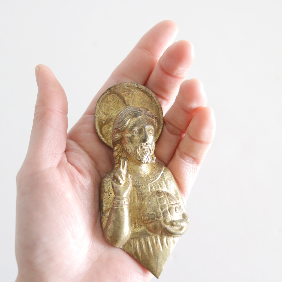 手のひらサイズのキリストは、真鍮製のずしりと重みを感じるお品です。