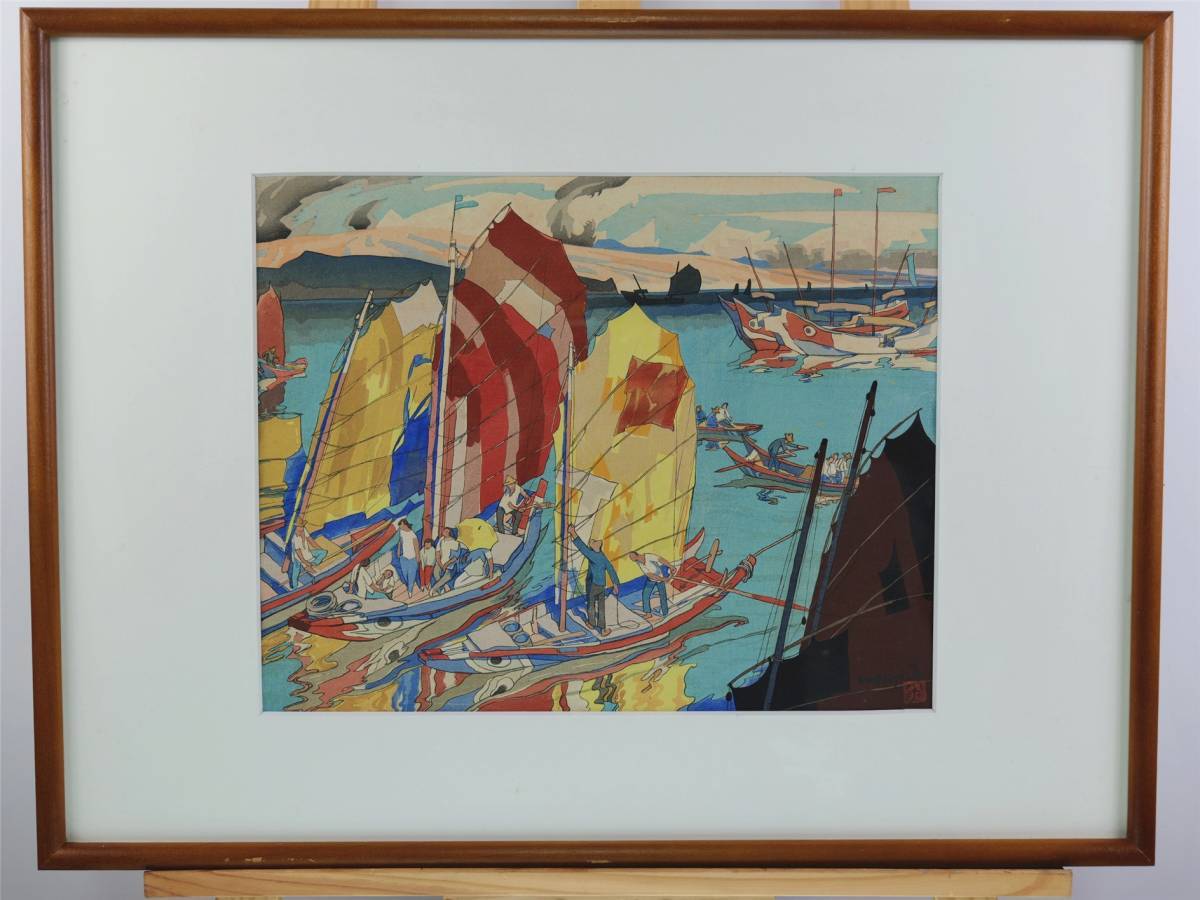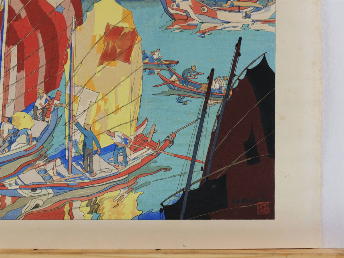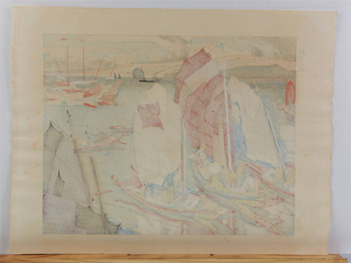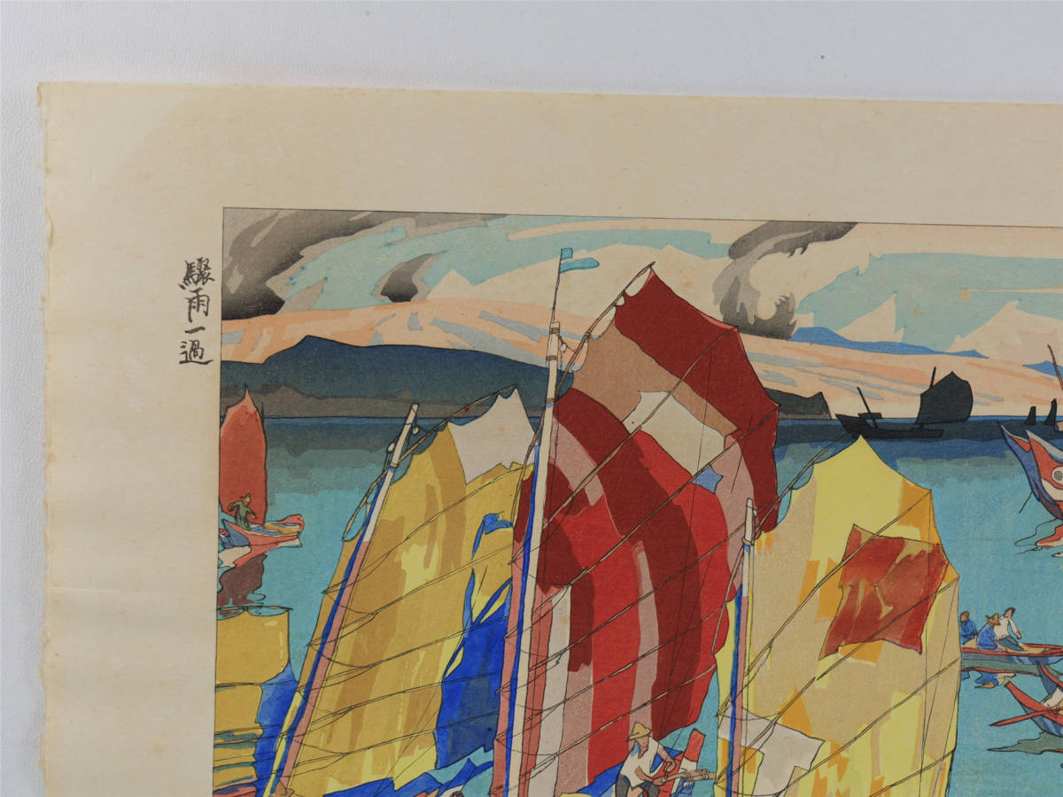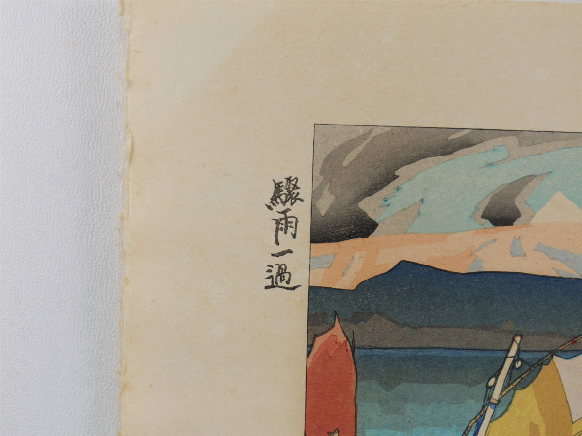 | 石川寅治「驟雨一過」手摺木版画 山岸主計刀 漆原栄次郎摺 真作保証 額装 |
