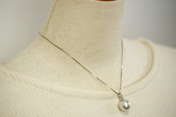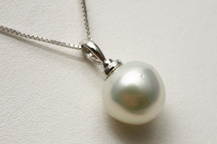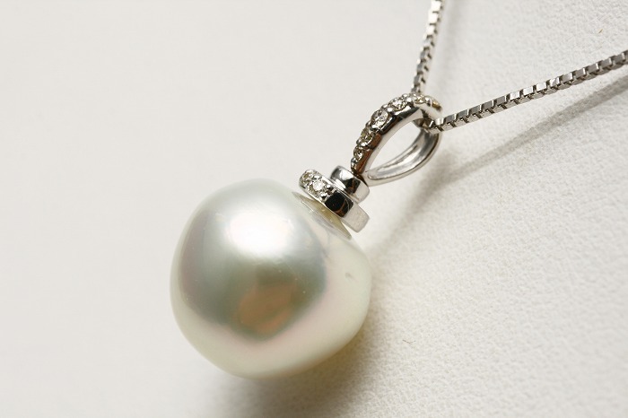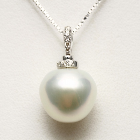 大粒13mmアップの南洋白蝶パールペンダントです。 ホワイト系の大粒パールペンダントは胸元に飾るだけで、 上品で華やかなスタイルを演出いたしますので,1つあればとても便利です。 金具はダイヤがあしらわれた豪華なデザインです。 バチカンを支点に珠がユラユラと揺れ動きます。 | |