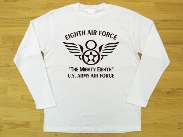 8th AIR FORCE 白 5.6oz 長袖Tシャツ 黒 L ミリタリー U.S. ARMY AIR FORCE the mighty eighth