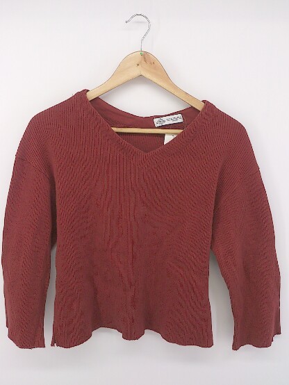 ◇ B:MING LIFE STORE by BEAMS Vネック コットン リブニット 長袖 カットソー レッド ブラウン系 レディース E