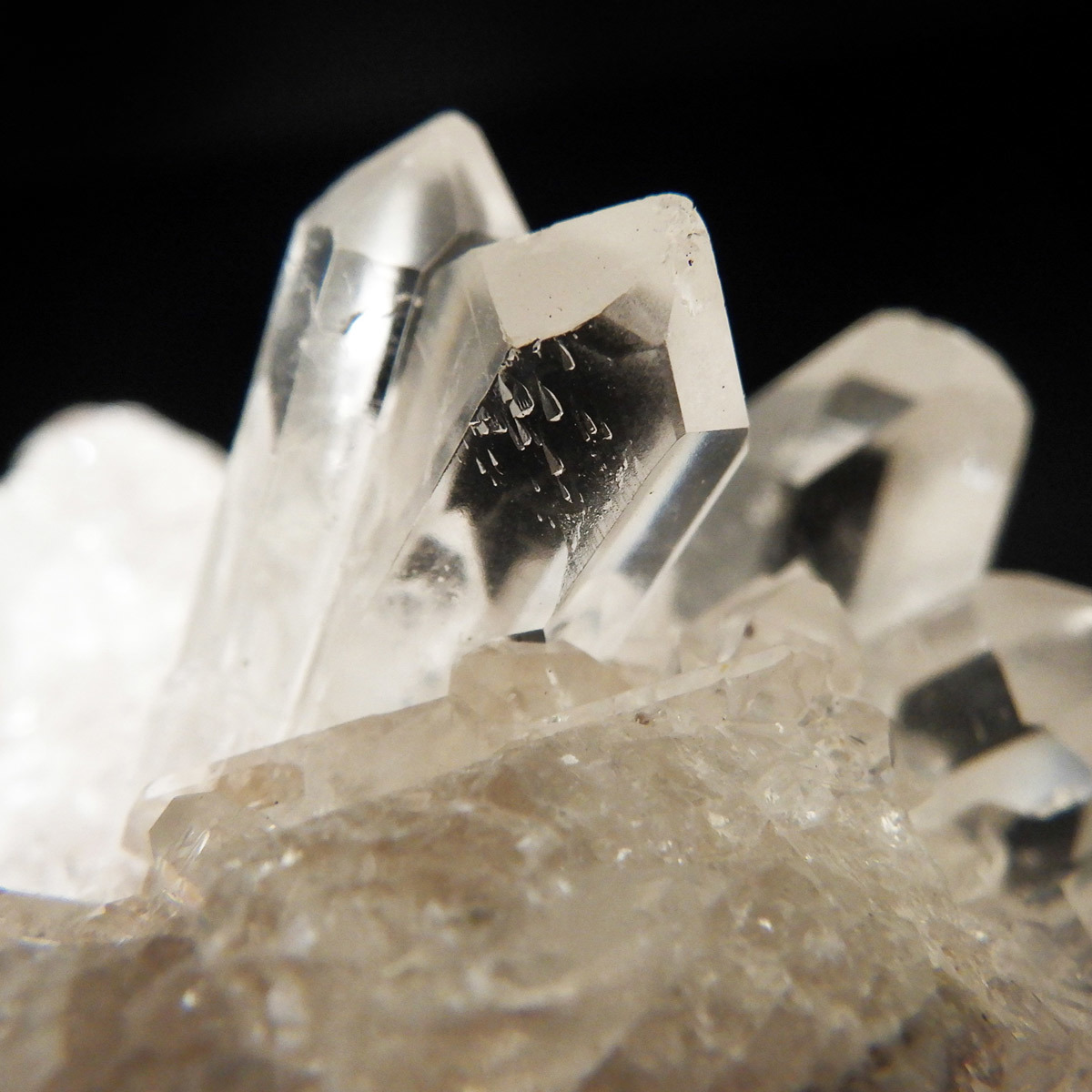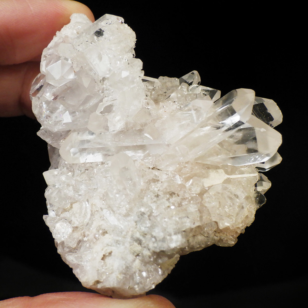 良質な水晶の産地、ブラジル ミナスジェライス州産の水晶クラスターです。この水晶クラスターの特徴は、照りと艶。光沢が強いため、驚くほどキラキラとしています。また、水晶柱が放射線状に伸びて立体的な構造を作っているものが多く、「これぞ、水晶クラスター」という形状をしています。非常に透明度の高い大小様々な結晶が複雑に絡み合い、見る角度によって様々な表情を見せる大変美しいクラスターです。