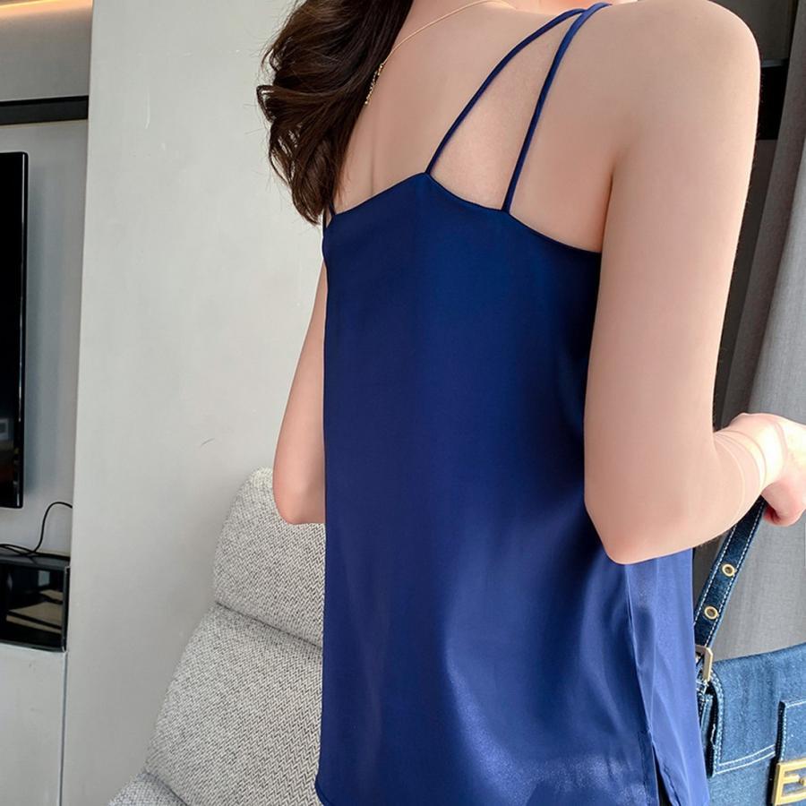 光沢感のあるキャミソールベストはトップスとしてもデイリーコーデのインナーとしても活躍します。胸もと部分は2枚仕立て、広がったVネックがデコルテラインも華奢見せできます。さらさらとした肌触で、快適な着心地です。存在感を主張しすぎず、品のある光沢が女性らしさを演出してくれます。
