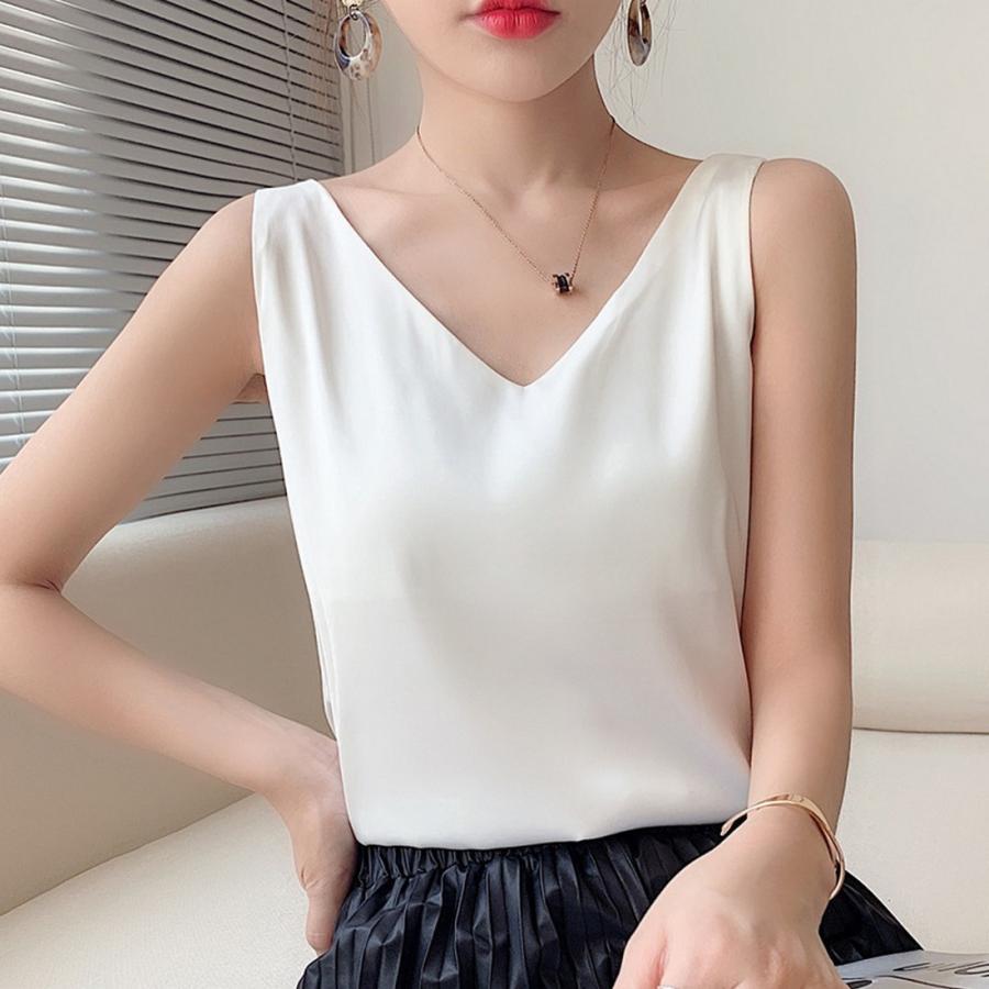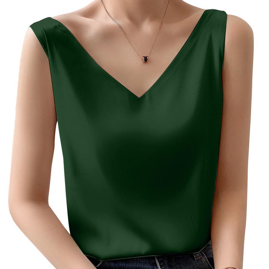 キャミソールベスト インナー Vネック カジュアル キレイめ 春夏 光沢感 シンプル 無地 Sサイズ グリーン