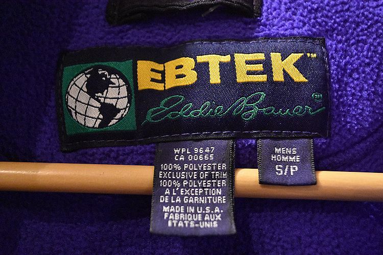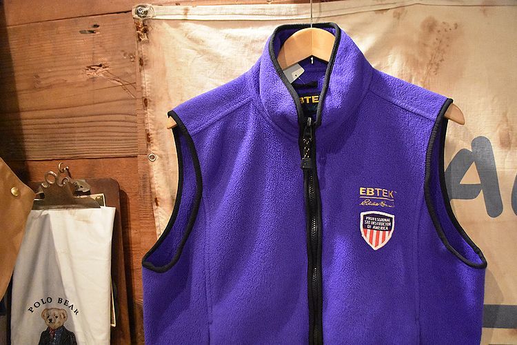 グッドアイテムUSA製90sビンテージEDDIEBAUER エディーバウアーEBTEkイービーテック フルジップフリースベストS紫アメリカ製アメカジn2378