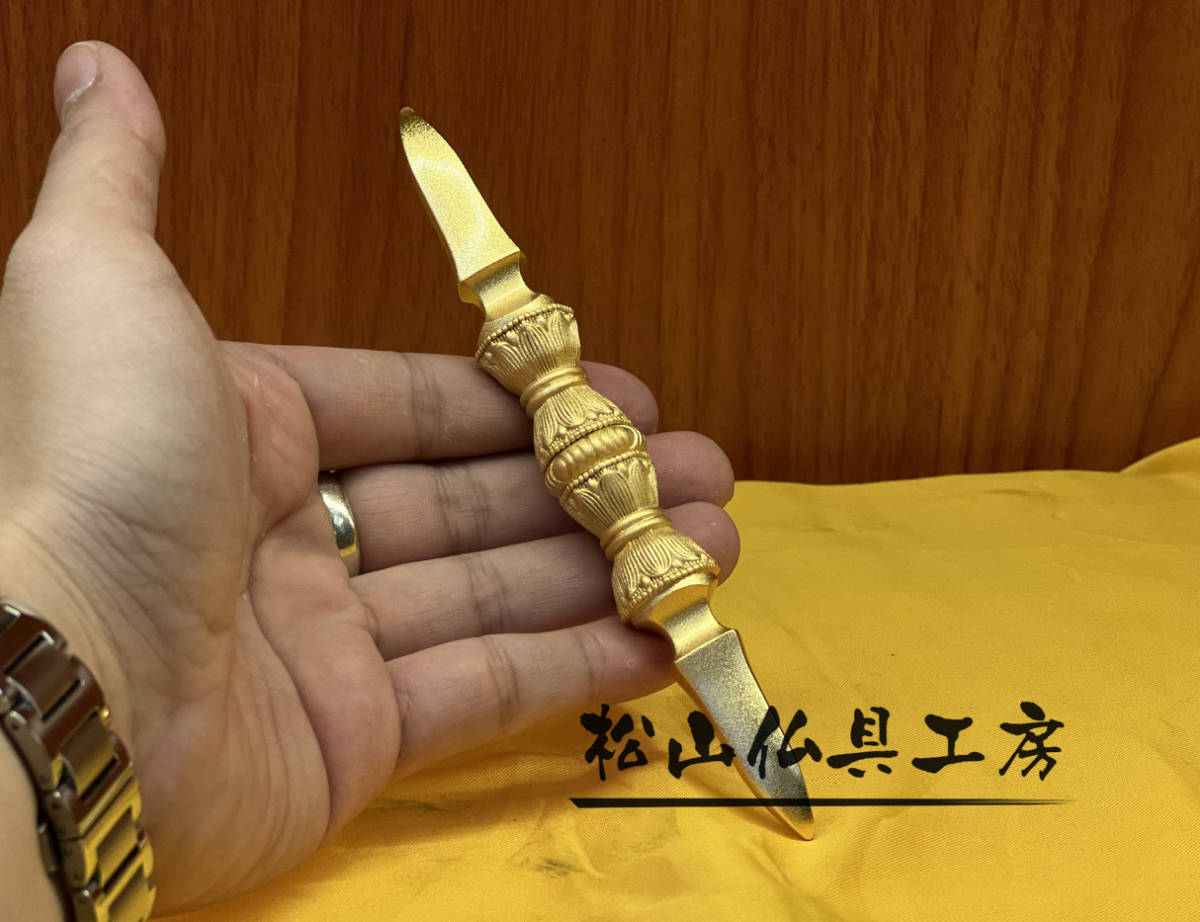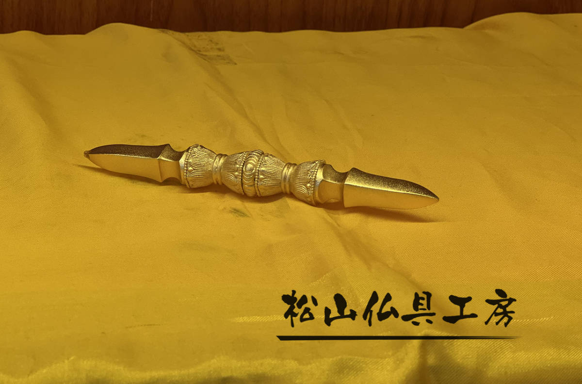 「松山仏具工房出品」独鈷杵 真鍮製 消鍍金