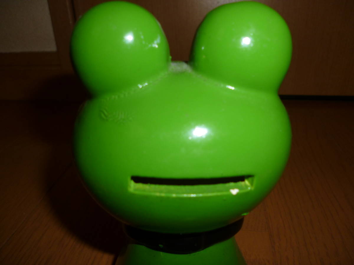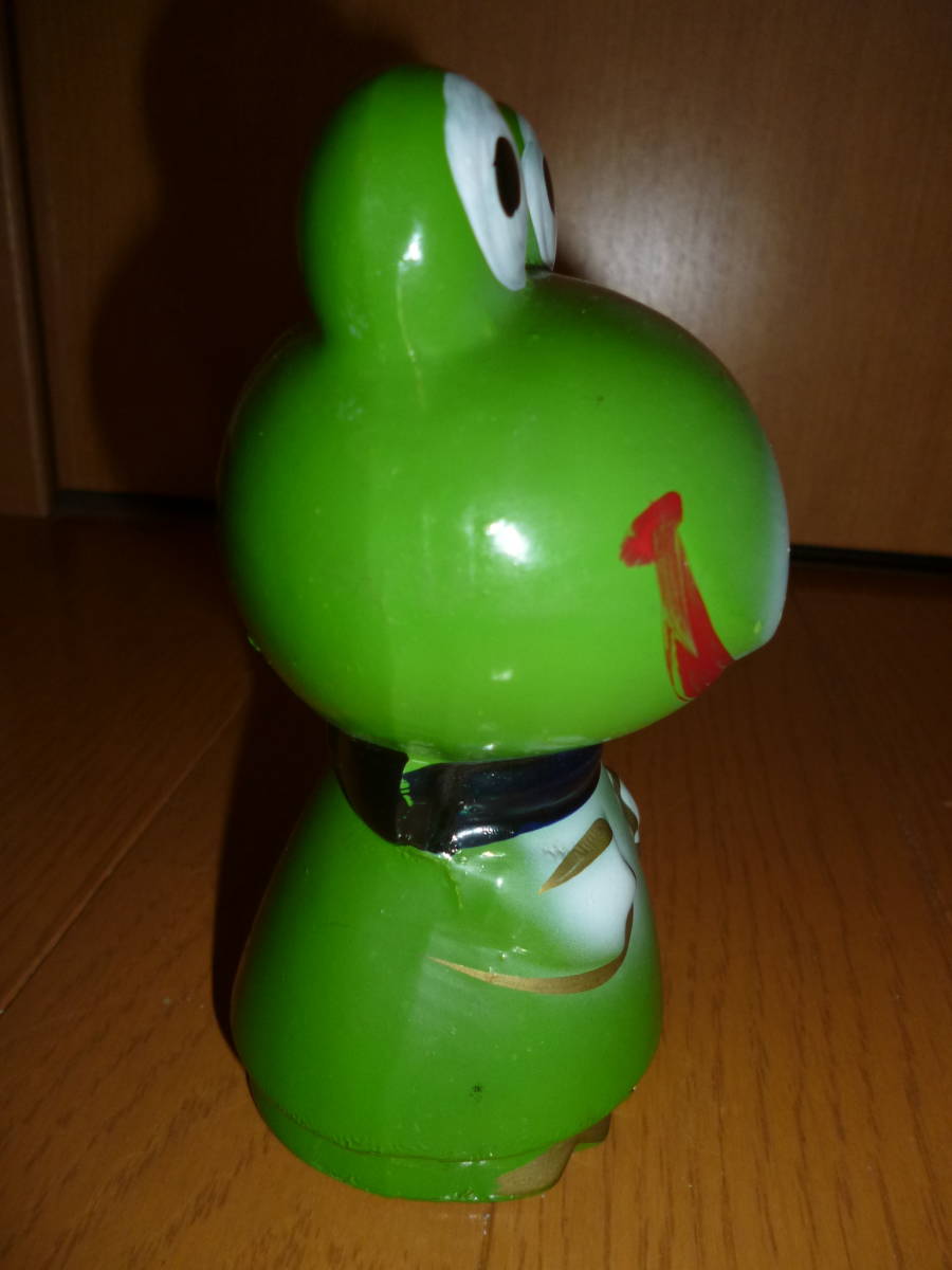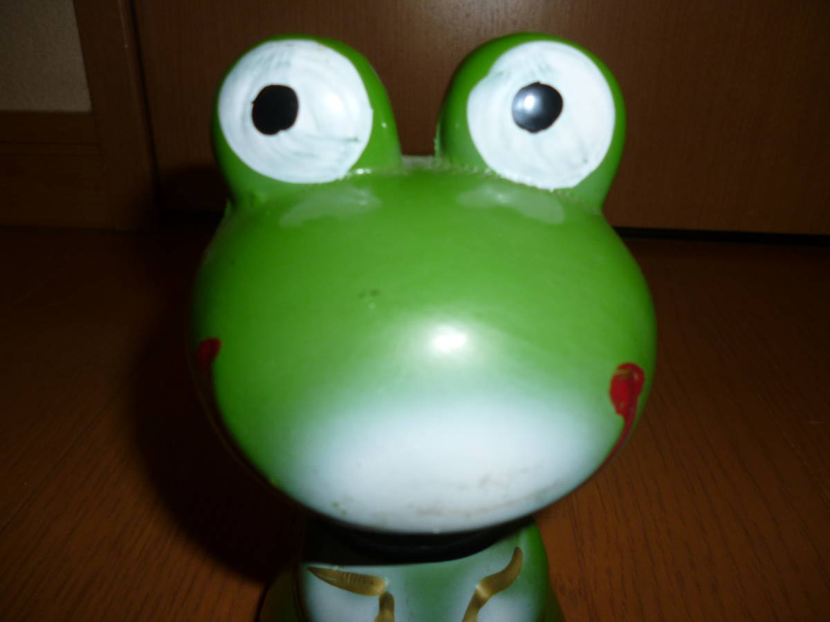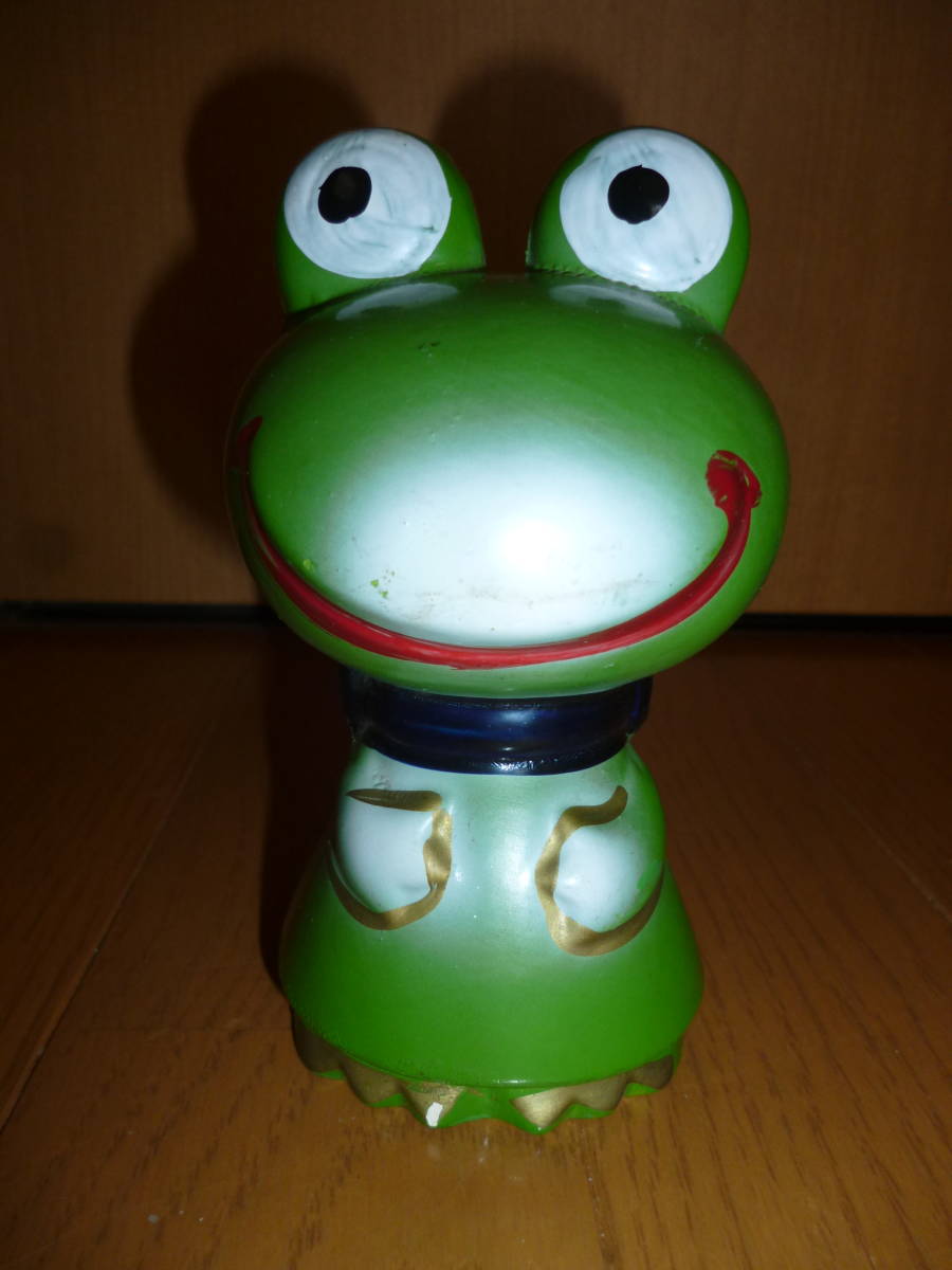 手塗カエル貯金箱、古い物です、ヨゴレ少しあります、サイズ約13cm