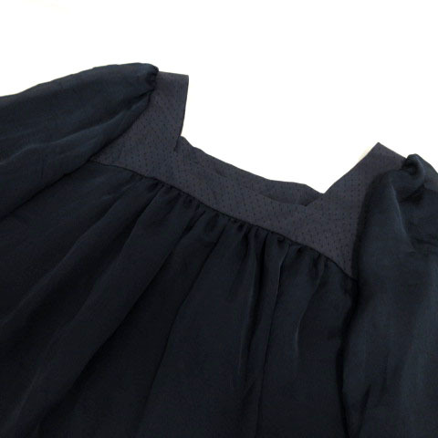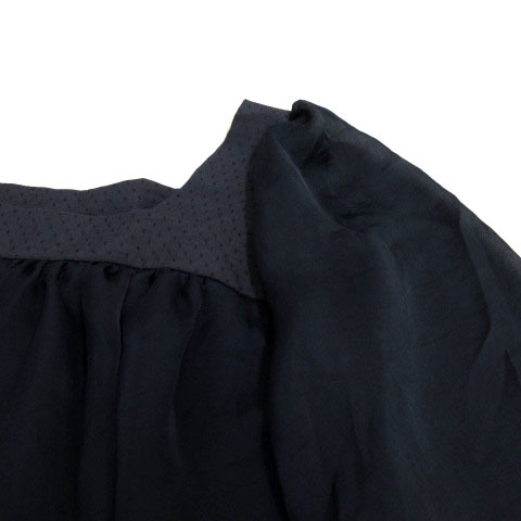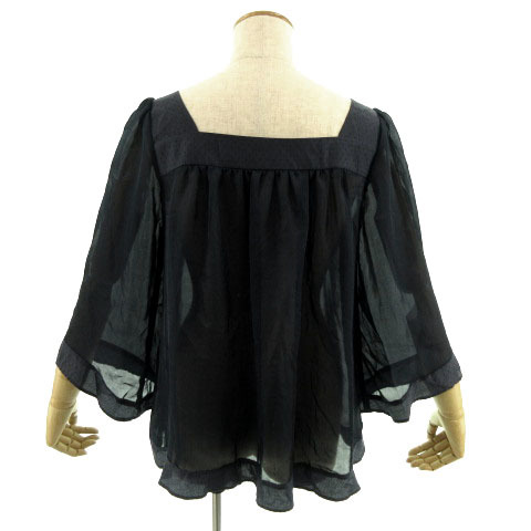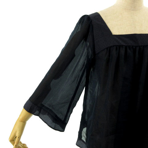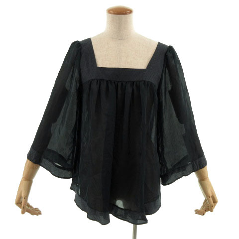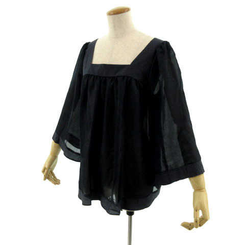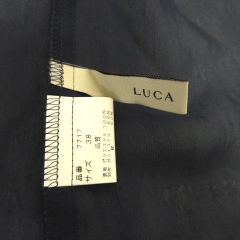 ルカ LUCA カットソー スクエアネック 七分袖 フレアスリーブ シースルー 日本製 ネイビー 紺 38 レディース