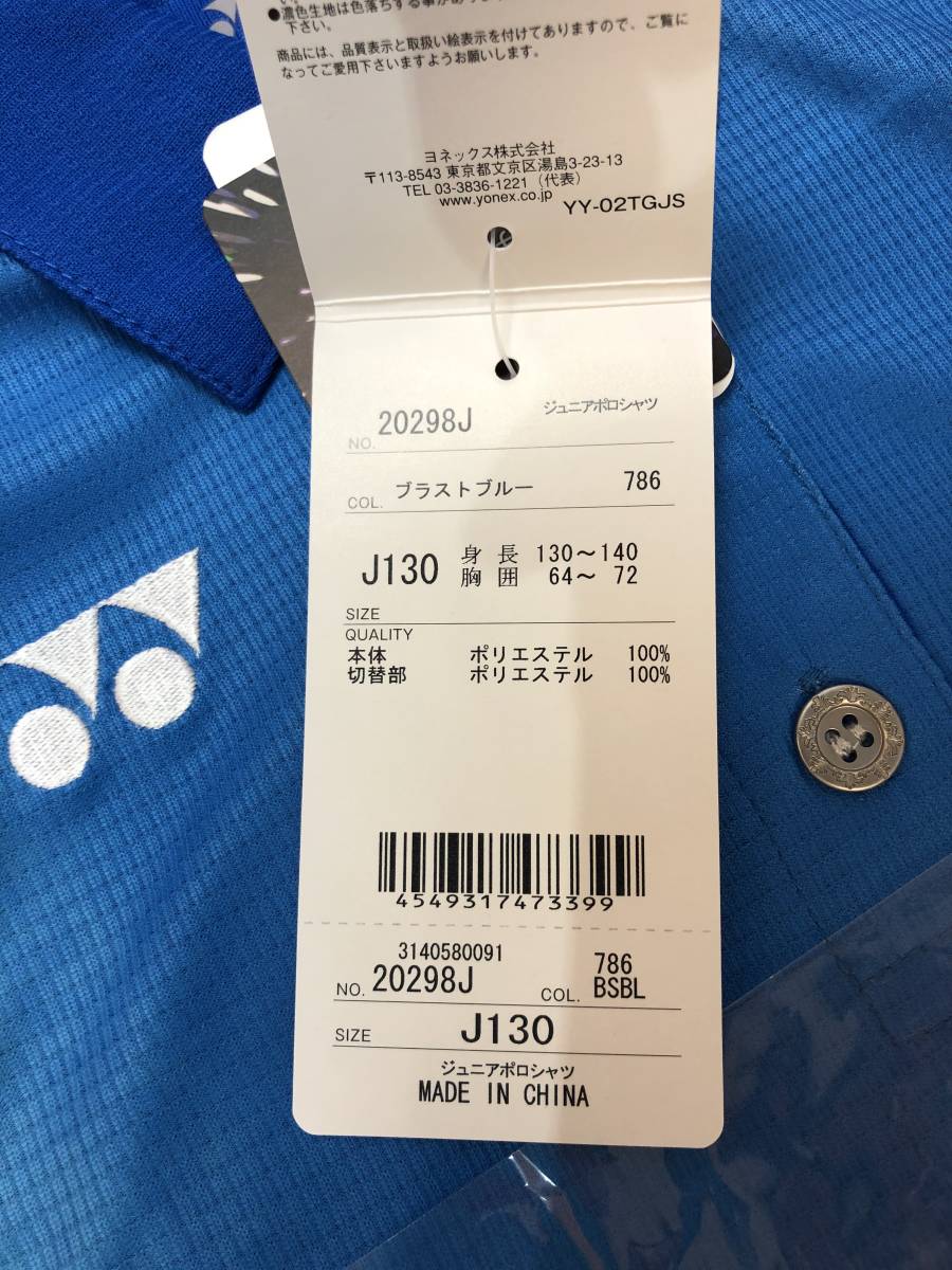 B82.40%off! YONEX 20298J 786 J130 ヨネックス ジュニアポロシャツ ブラストブルー