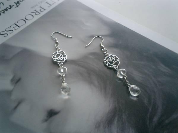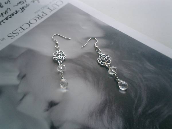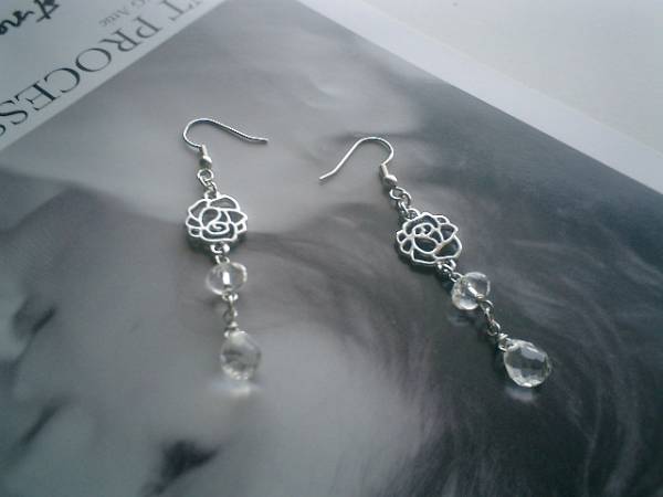 愛しいお気に入り・・シリーズです♪セピア色の記憶・・薔薇と水晶のピアスです♪8ミリのボタンカットやドロップカットの水晶に可憐な薔薇のチャームを合わせてロマンチックしています♪長さは全長6センチ位です♪♪お揃いのネックレスやブレスレットも出品しています♪♪シンプルで飽きのこないいつまでも着けられるデザインを考えて作りました!ハンドメイドをご理解頂いてノークレーム、ノーリターンでお願いします