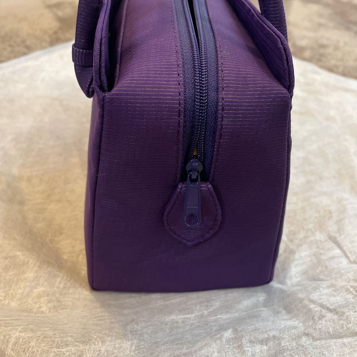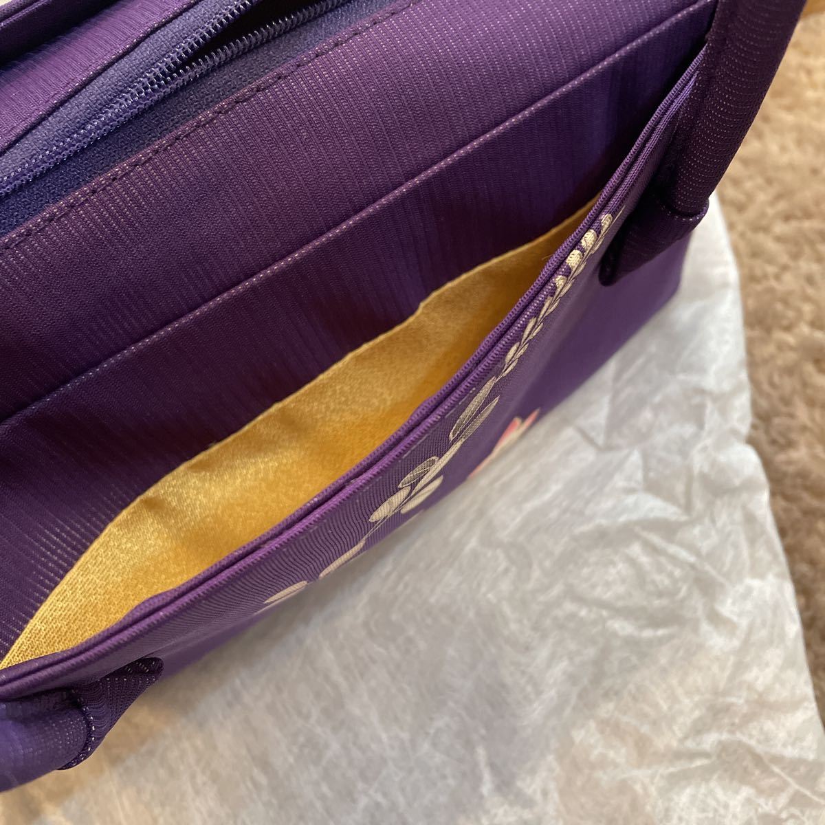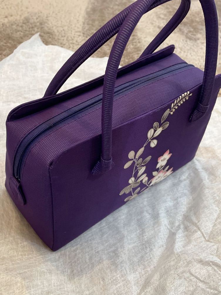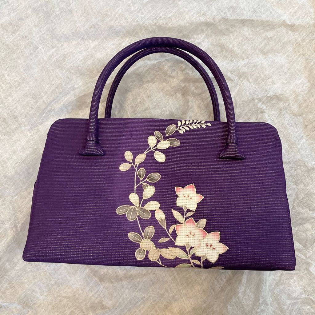 紫色の着物生地が、とてもキレイなバッグで、とても上品な仕上がりになっています。