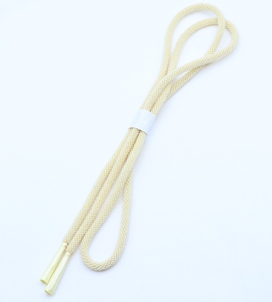 | お洒落着用 太幅 帯締め 帯締め 組紐 丸 オールビーズ クリーム色の編み 新品 | |