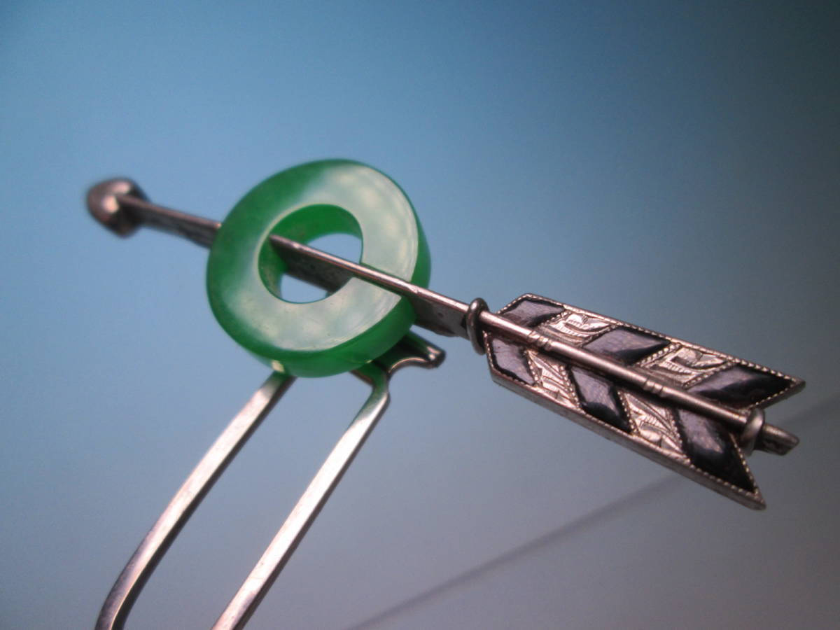 【江月】アンティーク・尼伊 彫金細工矢羽根のかんざし 共ケース付