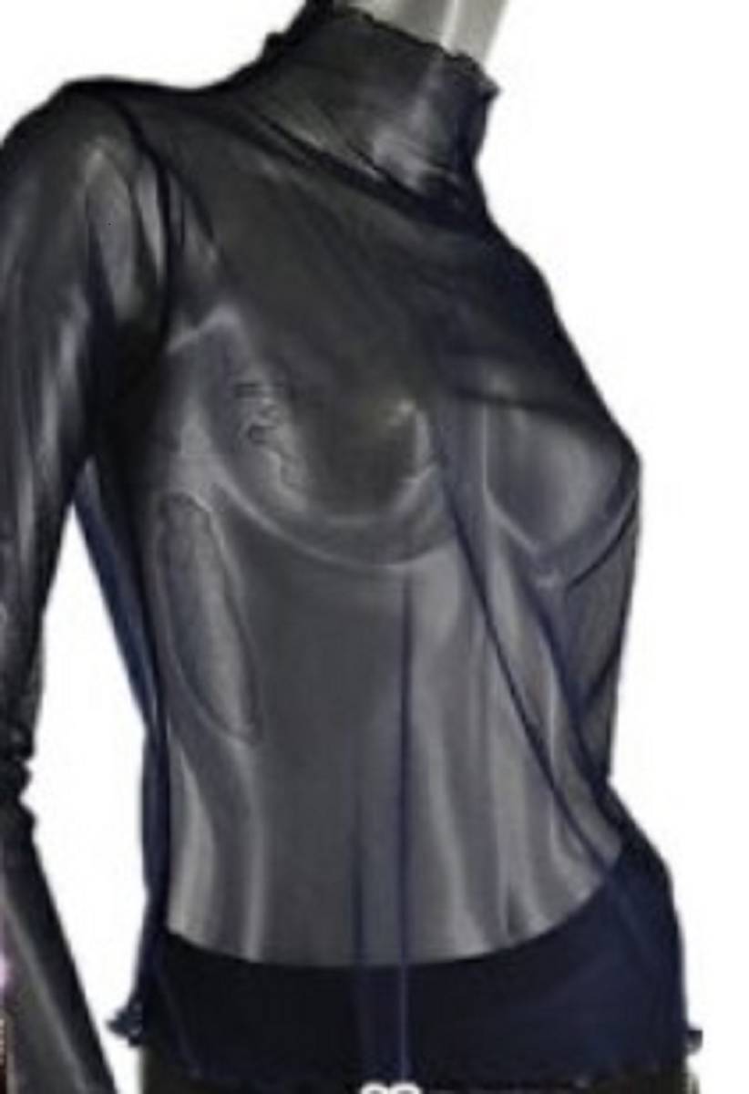 新品●送料無料● ライトグリーン ●ボトルネック ハイネック パワーネット透けカットソー お色いっぱ~い