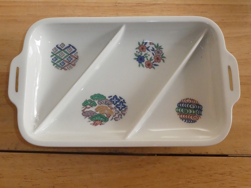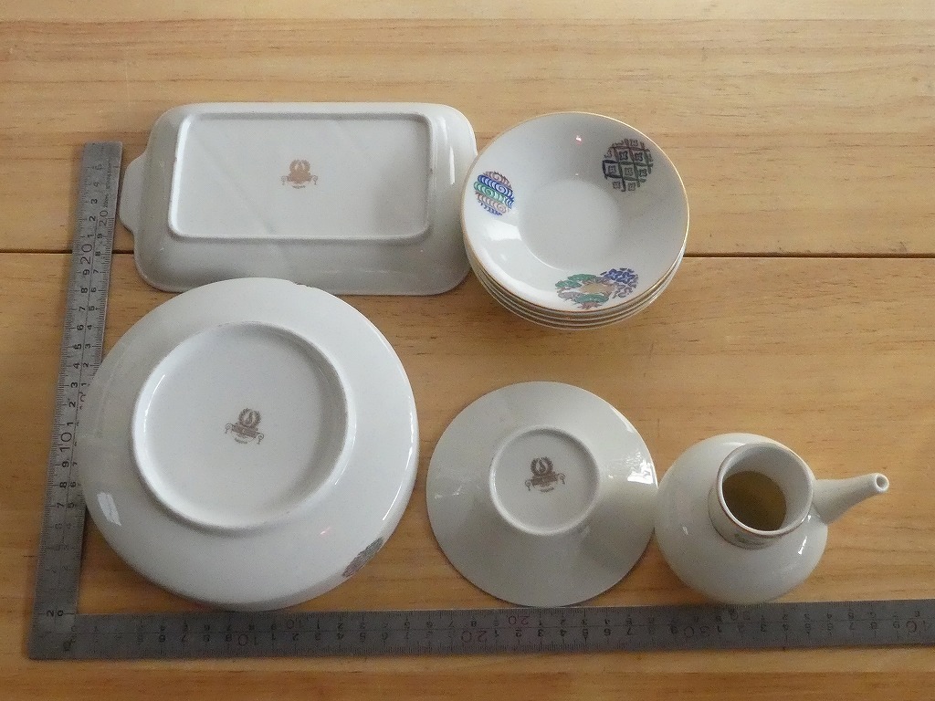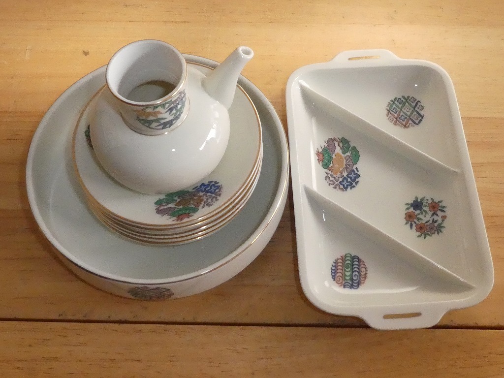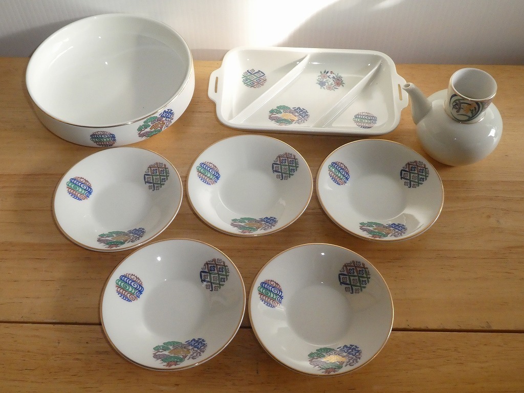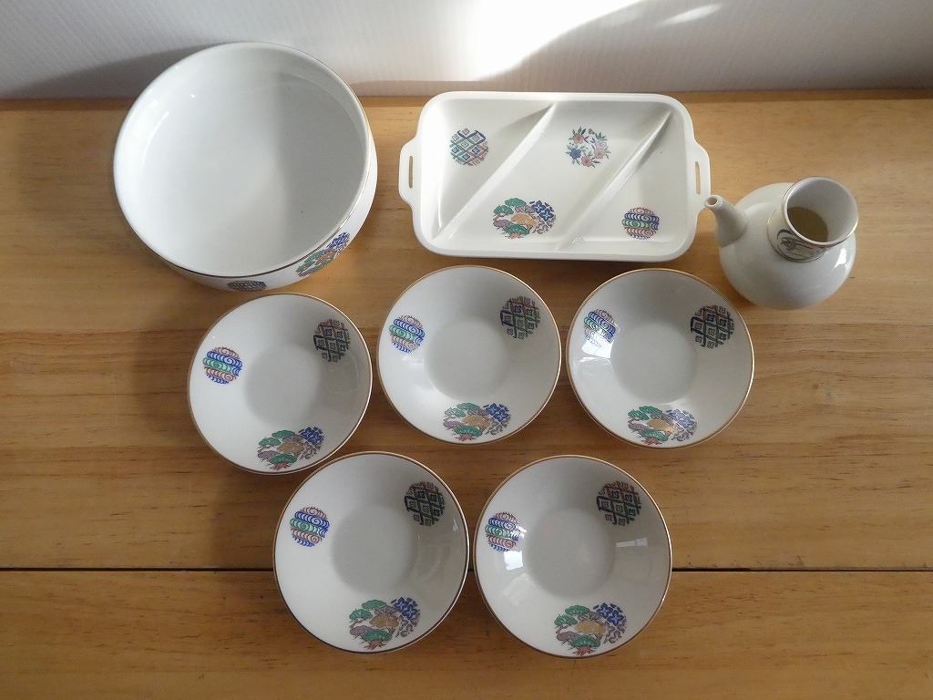 中鉢口径約15.5㎝、小皿口径約10.5㎝、仕切り皿約19㎝×約11㎝、醤油さし高さ約8.5㎝(多少の誤差はご了承ください)
