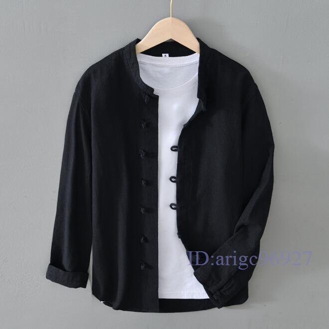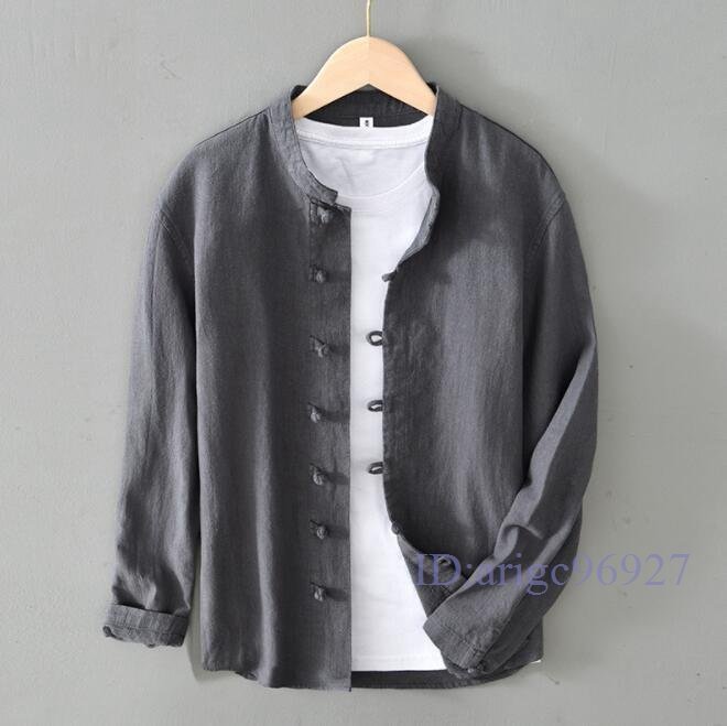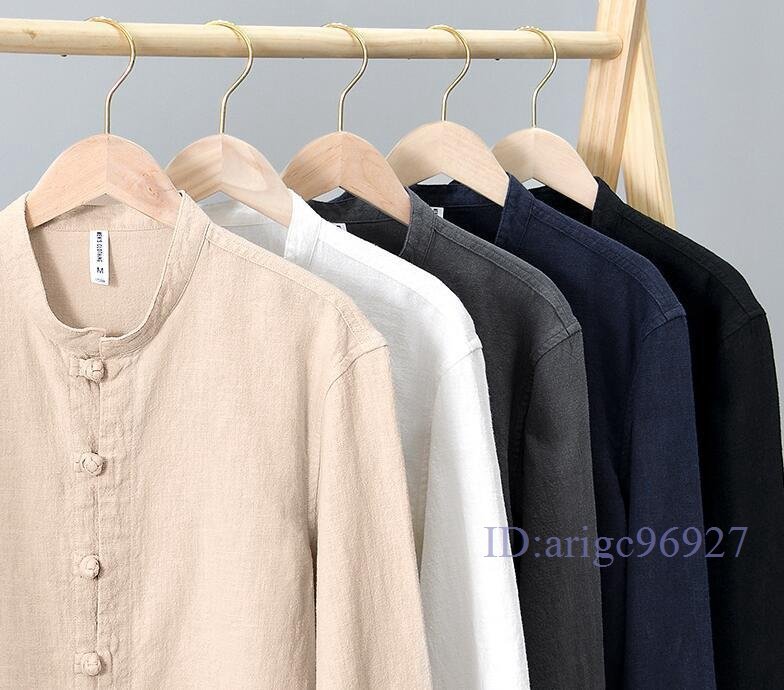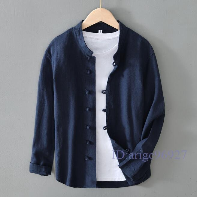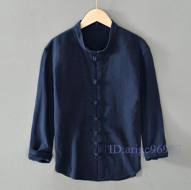 R824☆新品シャツジャケット リネンジャケット カーディガン 立ち襟 春夏秋通気 メンズ ブレザー ブルゾン トップス 紺色 XL