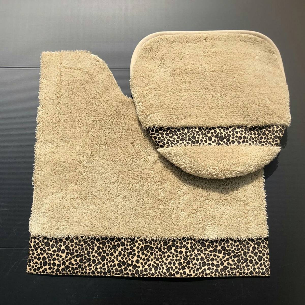ヒョウ柄 トイレマット ふたカバー セット (ベージュ)新品【日本製】