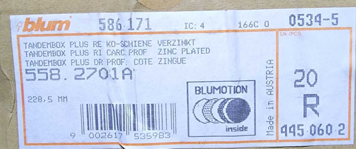 今回は BLUM TANDEMBOX ガイド 558.2701A LR(5本セット)の紹介です。