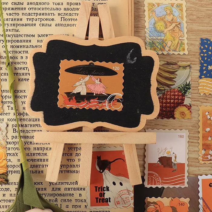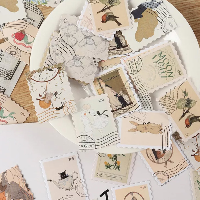 46枚 シール 切手 イラスト 女の子 花 アンティーク ビンテージ デコステッカー アンティーク調 コラージュ レトロ 0752-2