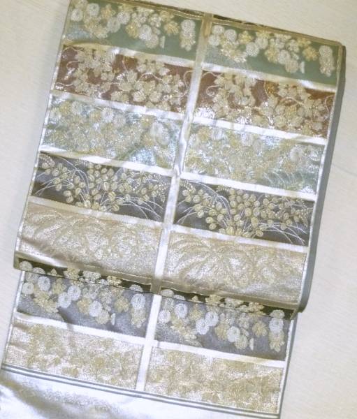★【河村織物★袋帯☆未仕立】絹100%☆高台寺秋草蒔絵文●付下げ・訪問着・留袖等に合います。色合わせもしやすいと思います。 画像でのご判断で、ご入札をお願い致します。ノークレームノーリターンでのご落札をお待ちしております。