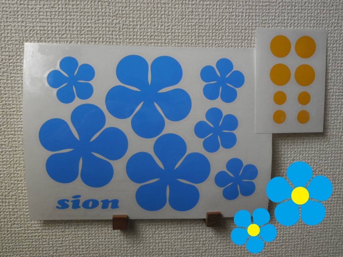 | ■北欧風 インテリアステッカー ■レトロ フラワー 昭和 flower シール デコ スカイブルー |