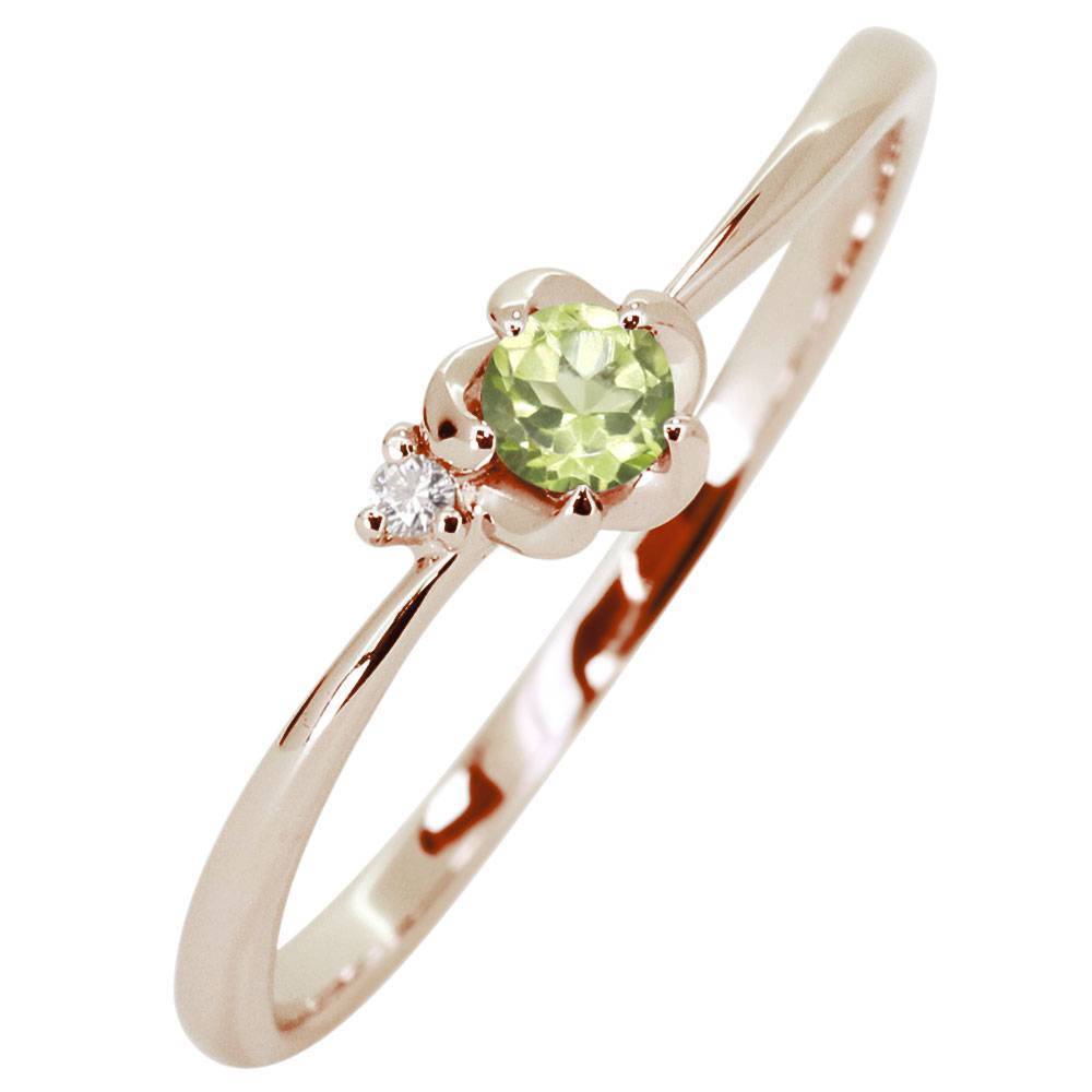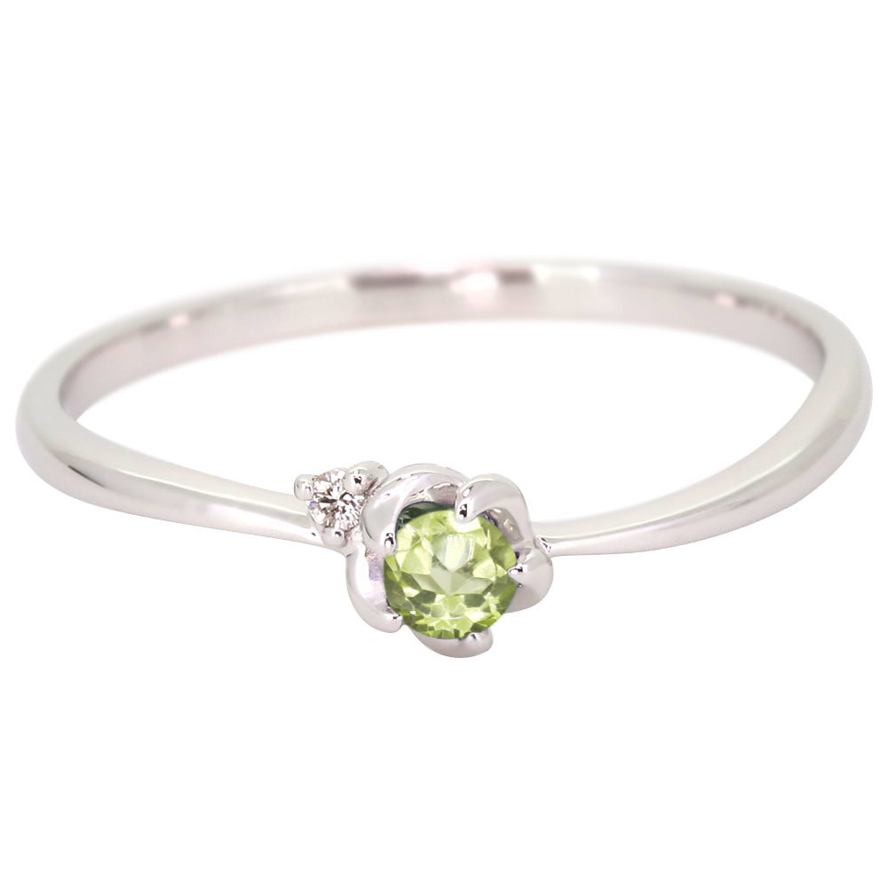 8月誕生石ペリドットを使用したシルバー製の、フラワー(花)モチーフリング(指輪)です。