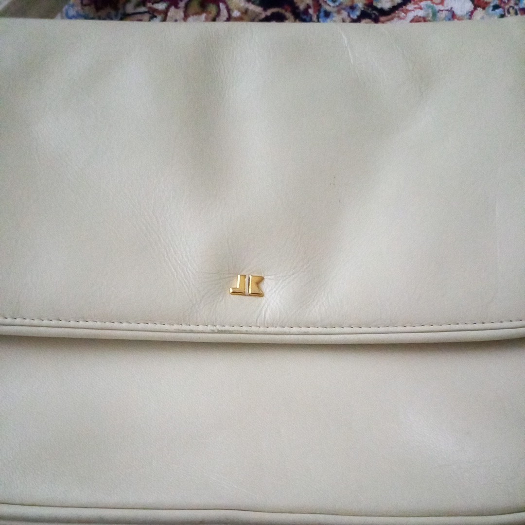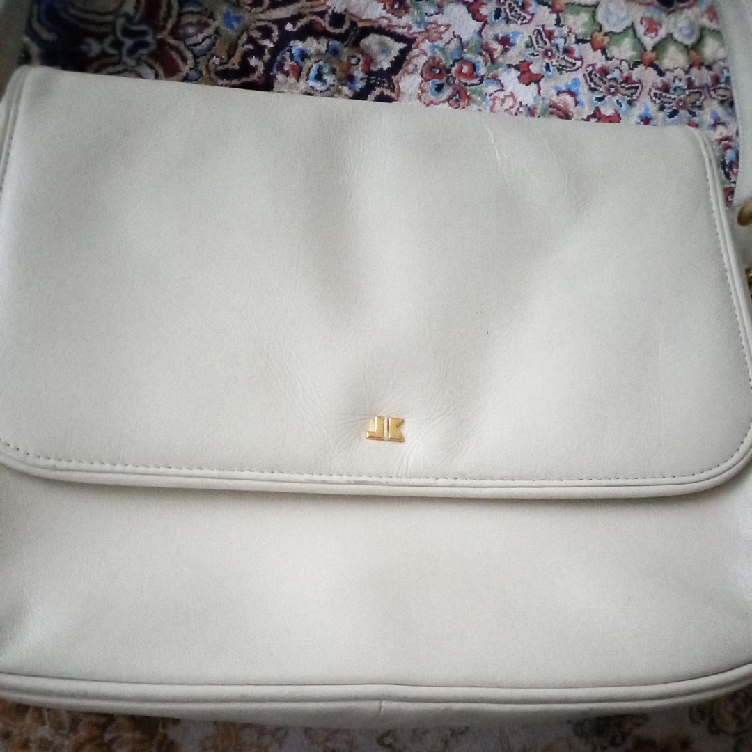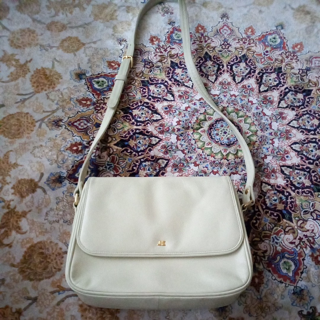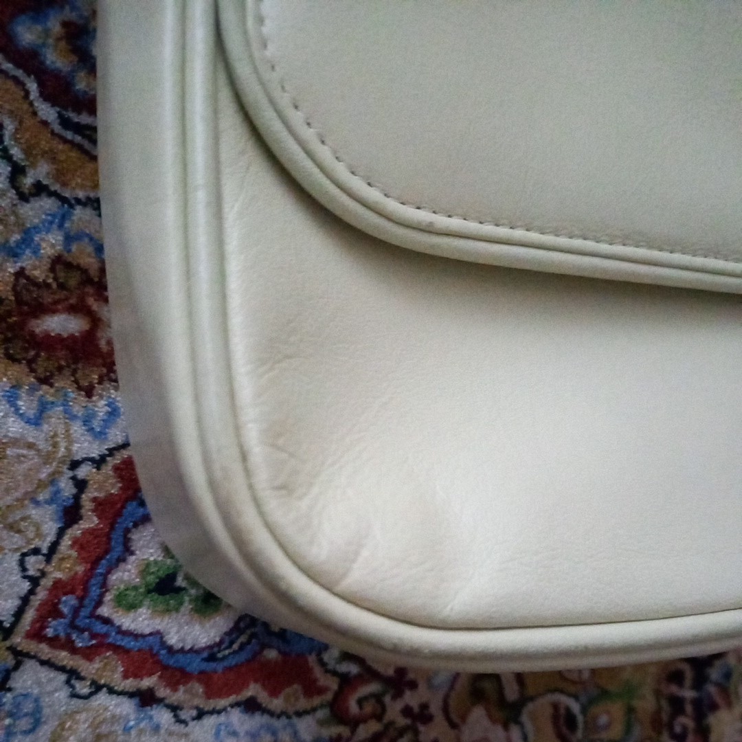 さわやかな白い革製のショルダーバッグ