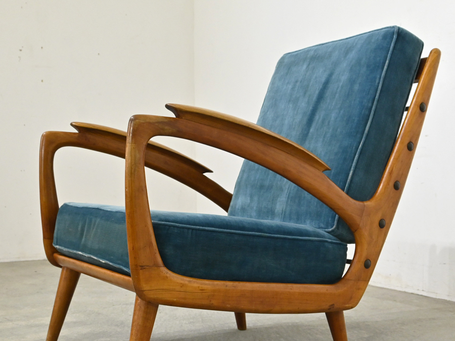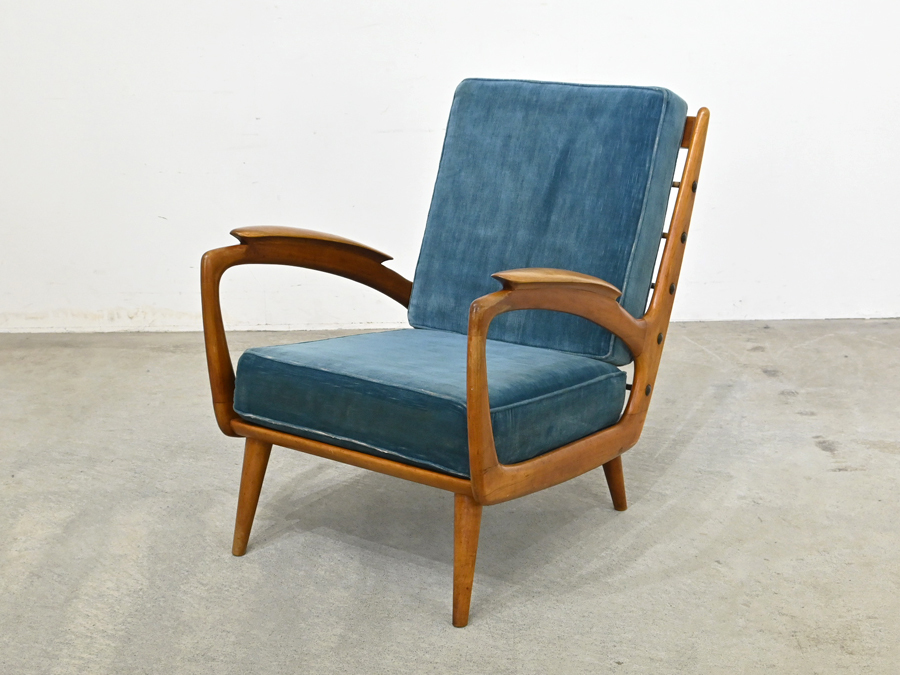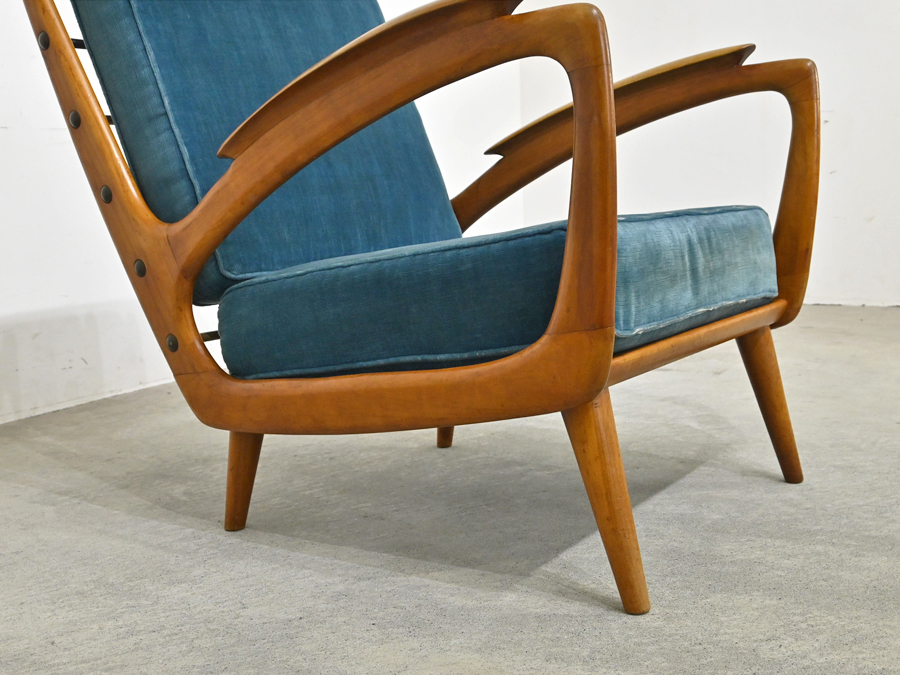 バーチとウォールナット材が使用された、滑らかなカーブを描く独特なフォルムとアームの造形が美しい一脚。