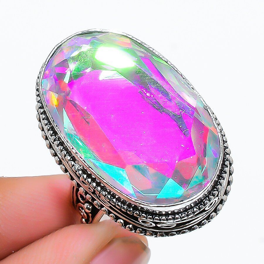 トパーズ 指輪 ヴィンテージミスティックレインボートパーズジェムストーン サイズUS8 お届けに2週間以上かかります。