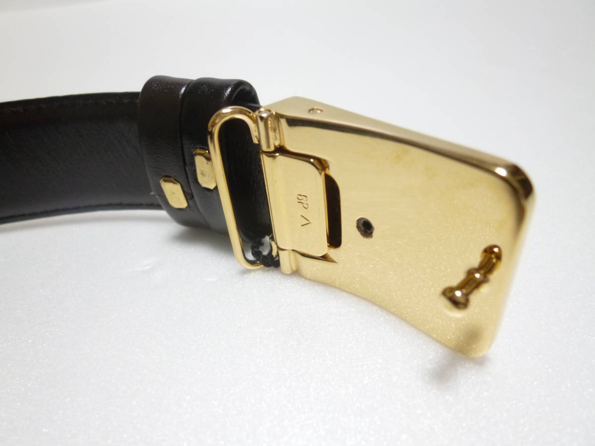 商品説明 | ダンヒル dunhill リバーシブルベルト 新品です。 MADE IN ITALY 90/36 100% CALF SKIN ベルト色:ブラック(無地)&ブラウン(無地)※写真参照 バックル色:ゴールド&シルバー サイズ(全長):約W103cm×D2.9cm バックルサイズ:約W44mm×H33mm 各穴(5穴)までのサイズ(ウエストサイズ):約83.5cm・86.5cm・89.5cm・92.5cm・95.5cm ベルトカット可能 商品状態 バックルは、保管時のスレがありますが、ほぼ綺麗です。 ベルトは、丸めて保管していた為、ブラック(無地)部分にシワがありますが、あとは、ほぼ綺麗です。 付属品:箱 |
